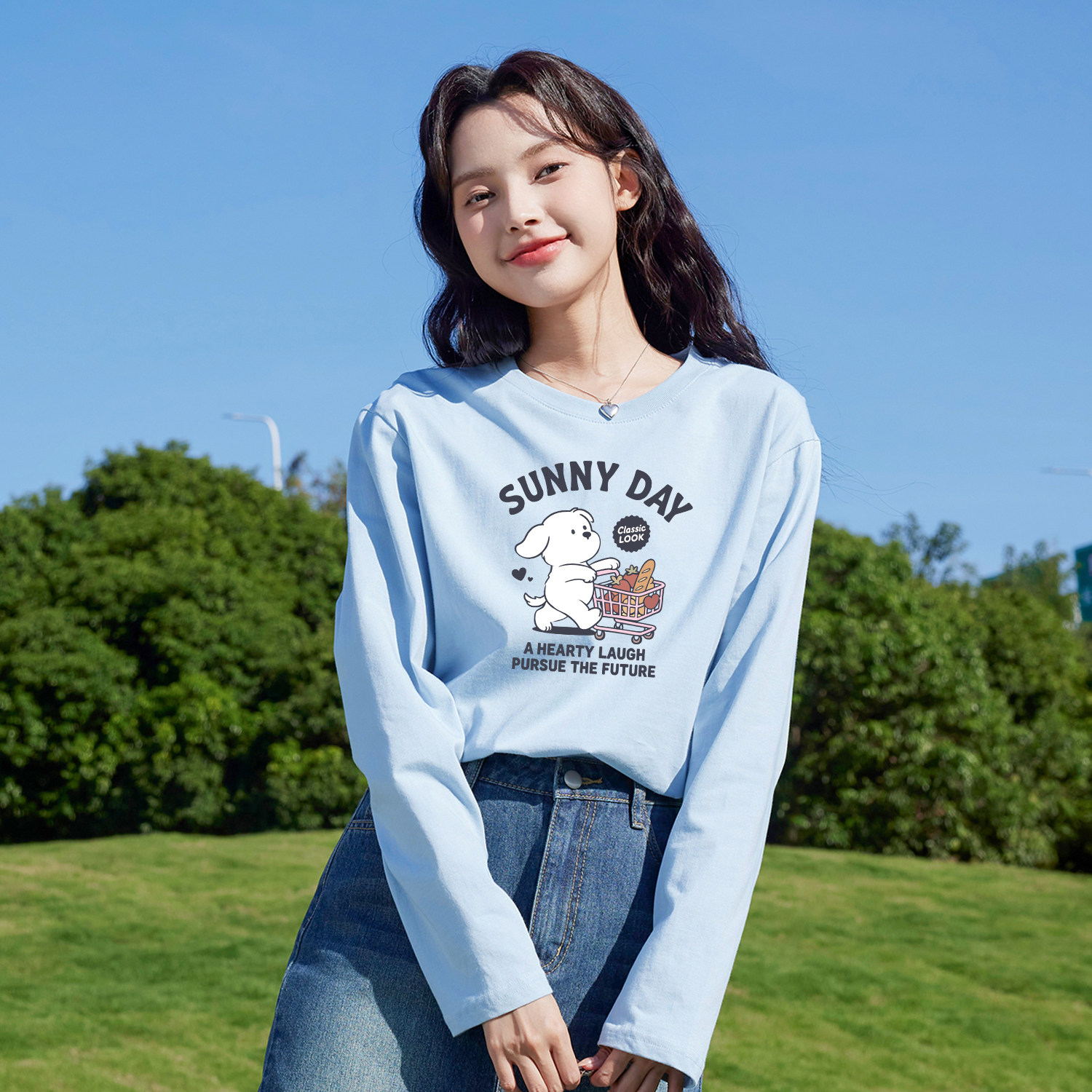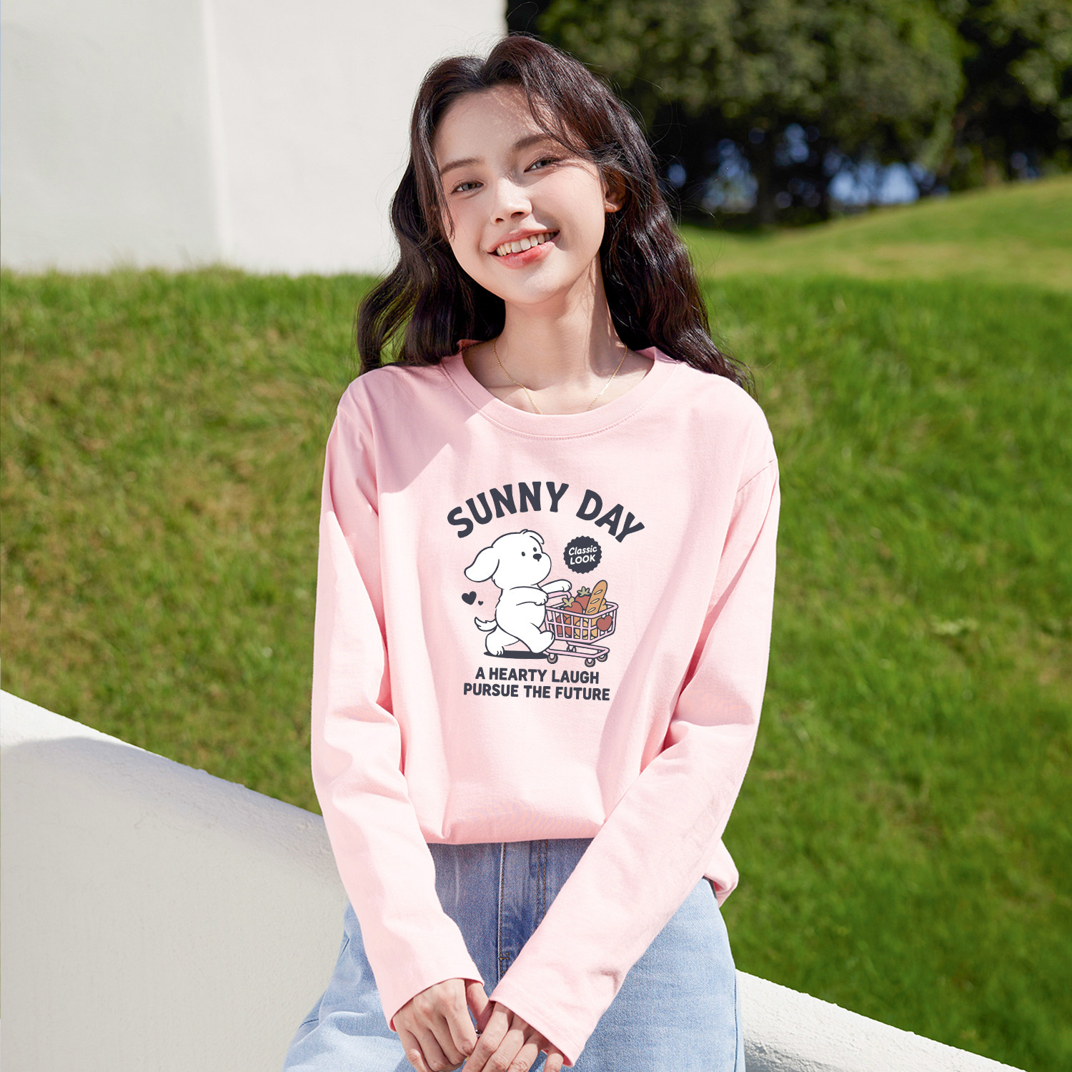 班尼路灰色纯棉长袖t恤女款2026新款宽松大码胖mm上衣内搭打底衫H