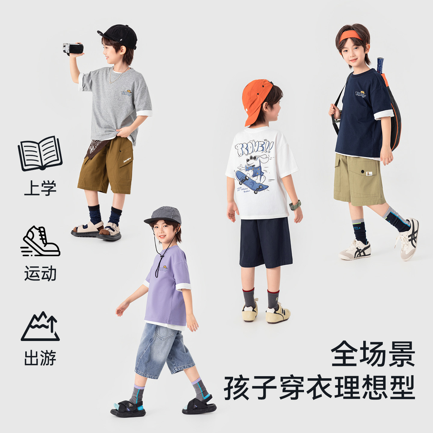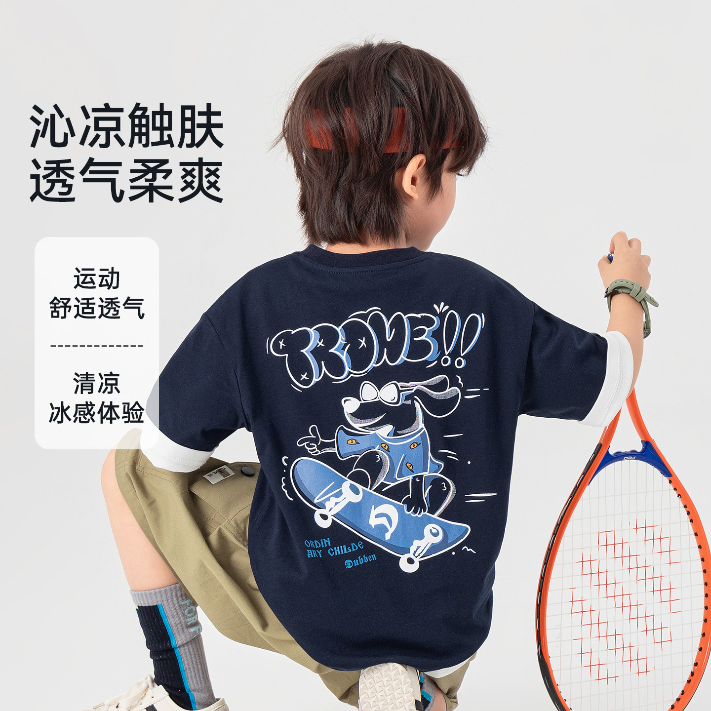 多多家男童短袖T恤儿童凉感夏装2026新款夏季男孩纯棉打底上衣潮