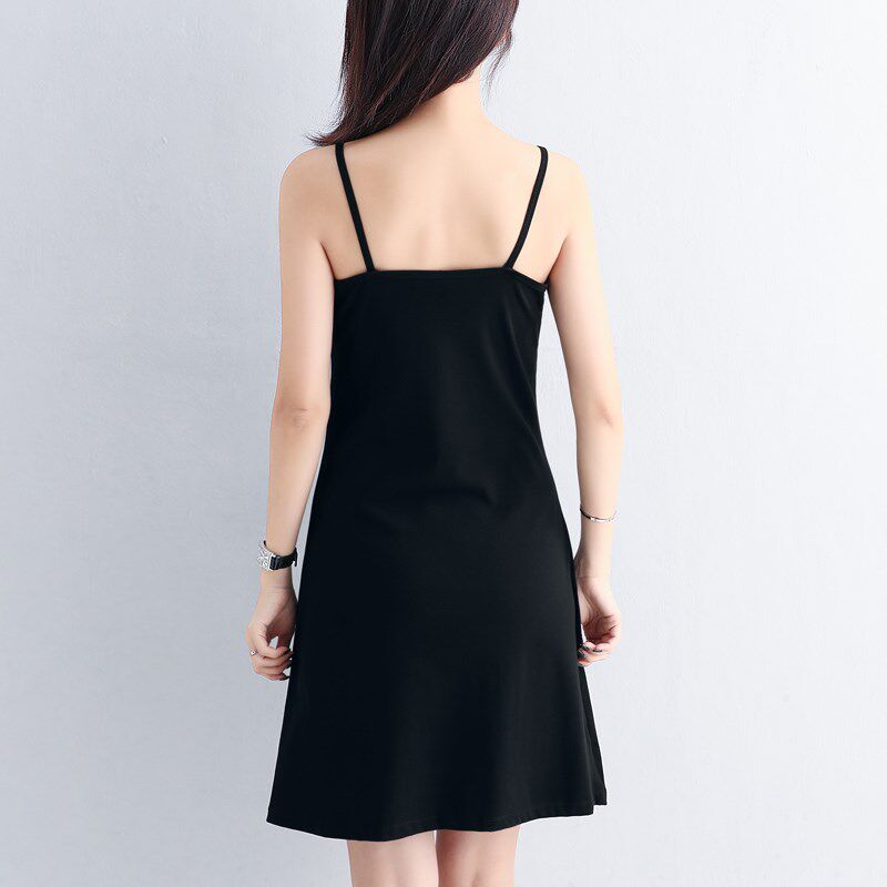 黑色吊带连衣裙女内搭夏季新款性感收腰气质打底a字背心裙中长款