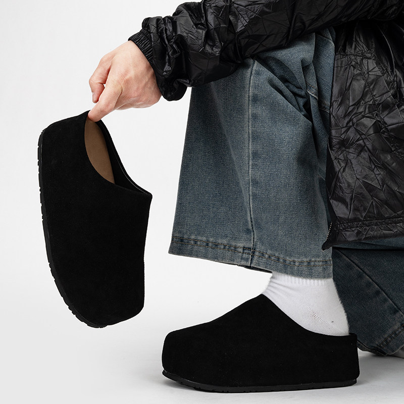 美式row厚底勃肯鞋男女微笑懒人穆勒鞋情侣增高6cm面包大头半拖鞋