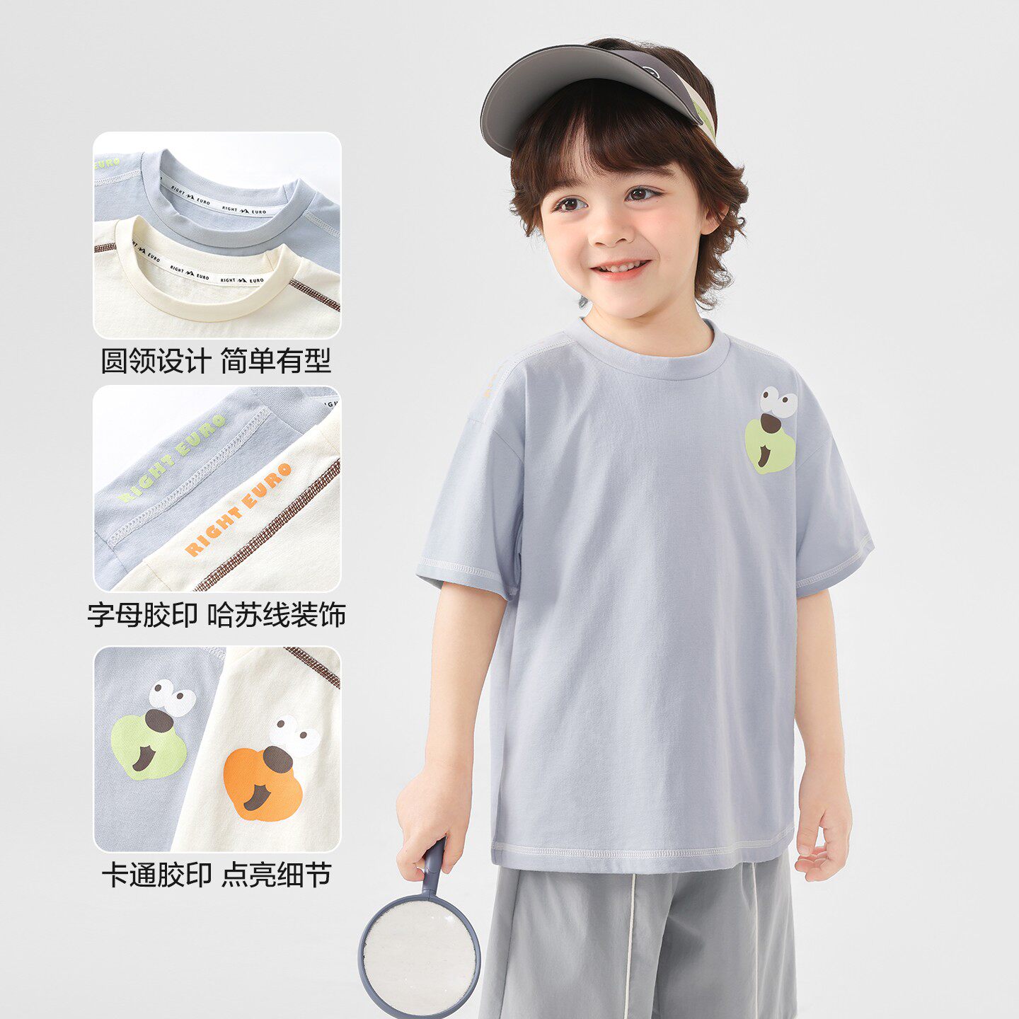 右欧儿童纯棉T恤夏季透气短袖小宝宝10a抑菌亲肤上衣男童童装半袖