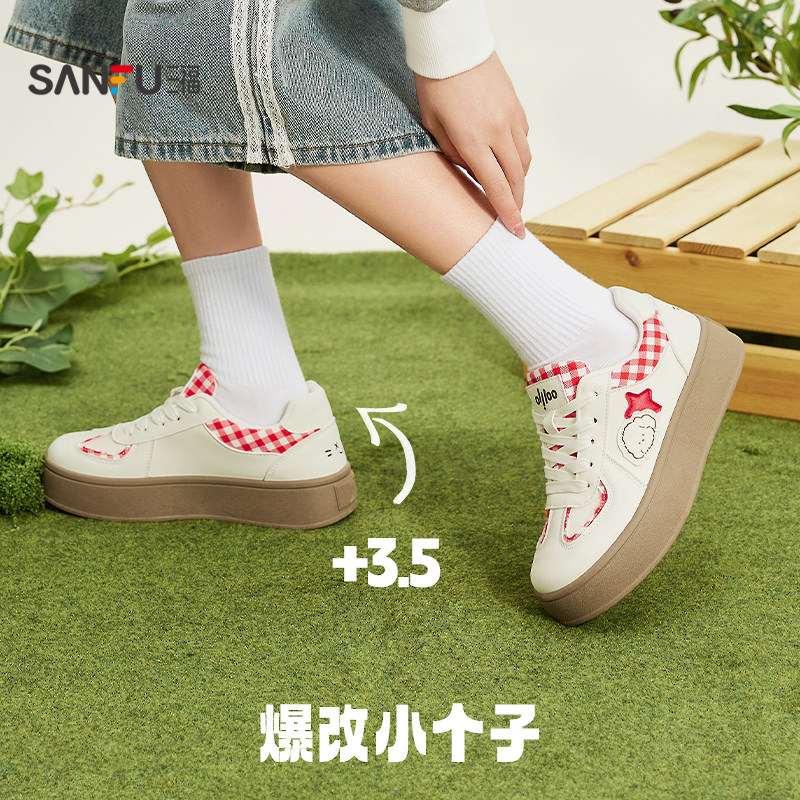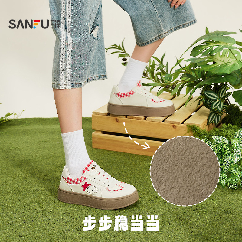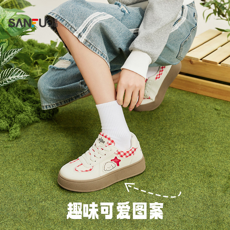 三福女板鞋春季软萌休闲系带厚底圆头低帮德训鞋女鞋853104