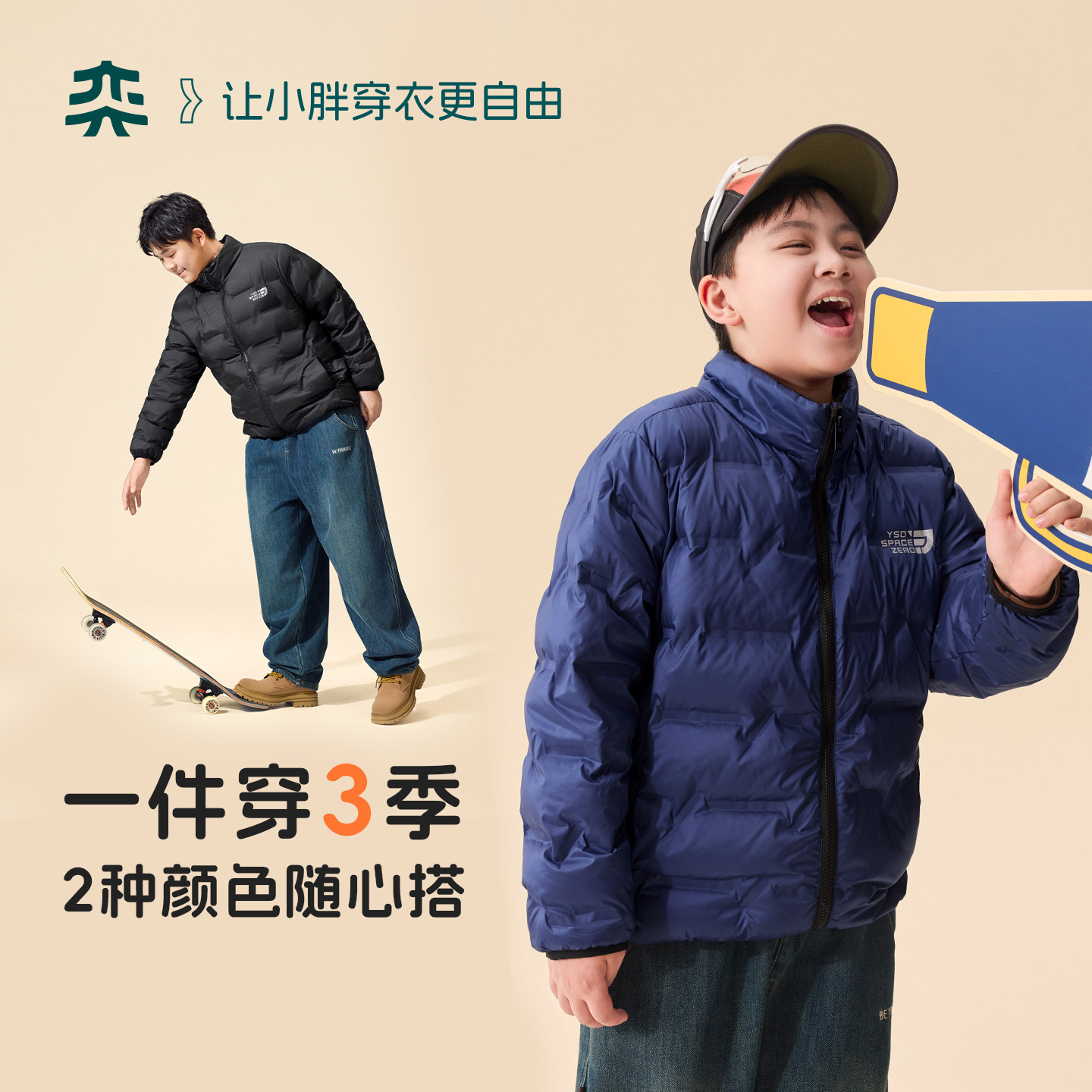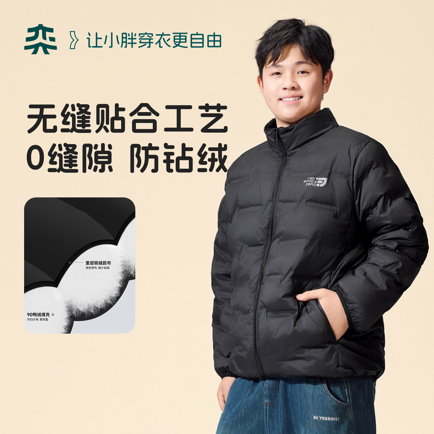 【90胶囊羽绒】奕时代胖男童轻薄羽绒服青少年外套校服神器内胆冬