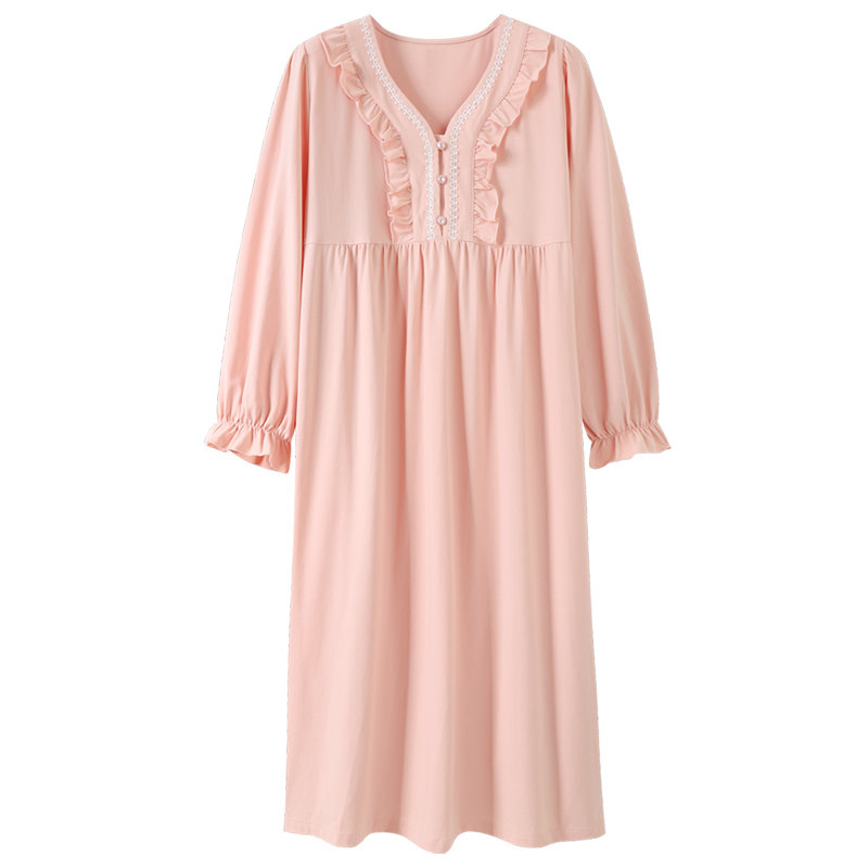猫人睡裙女春秋季秋款纯棉长袖长款连衣裙子睡衣大码夏款薄款