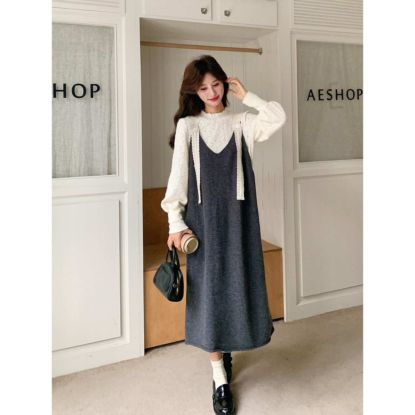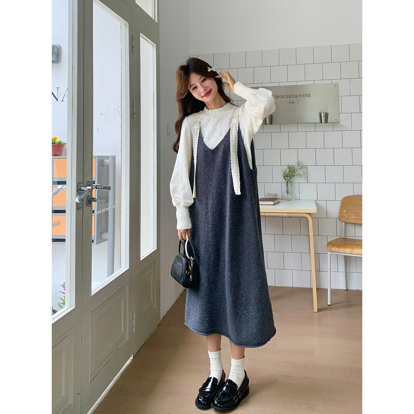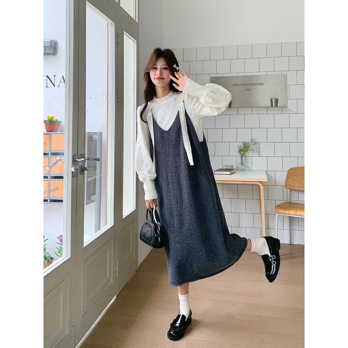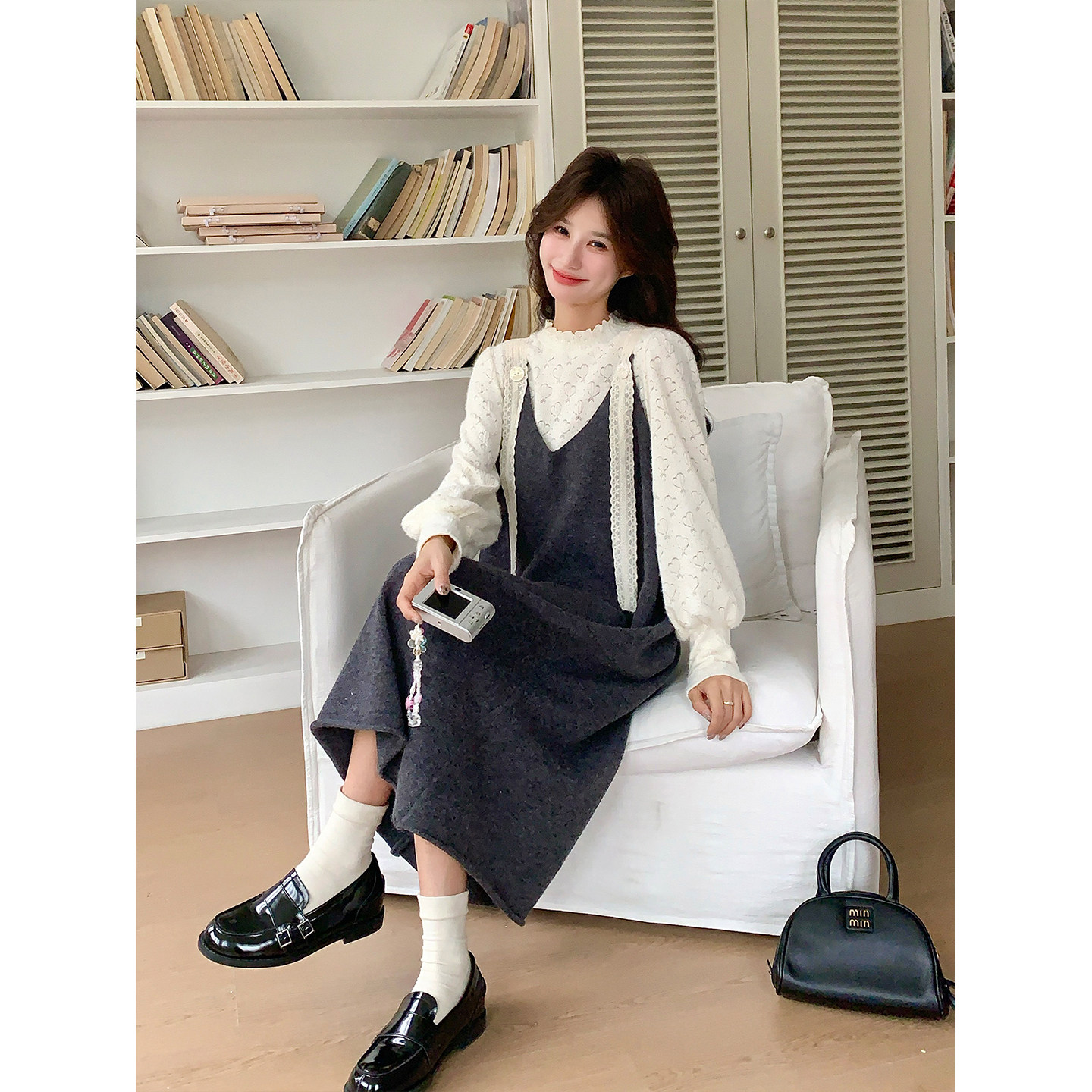轻奢风蕾丝上衣背带裙两件套女2026春季新款气质减龄打底衫套装潮