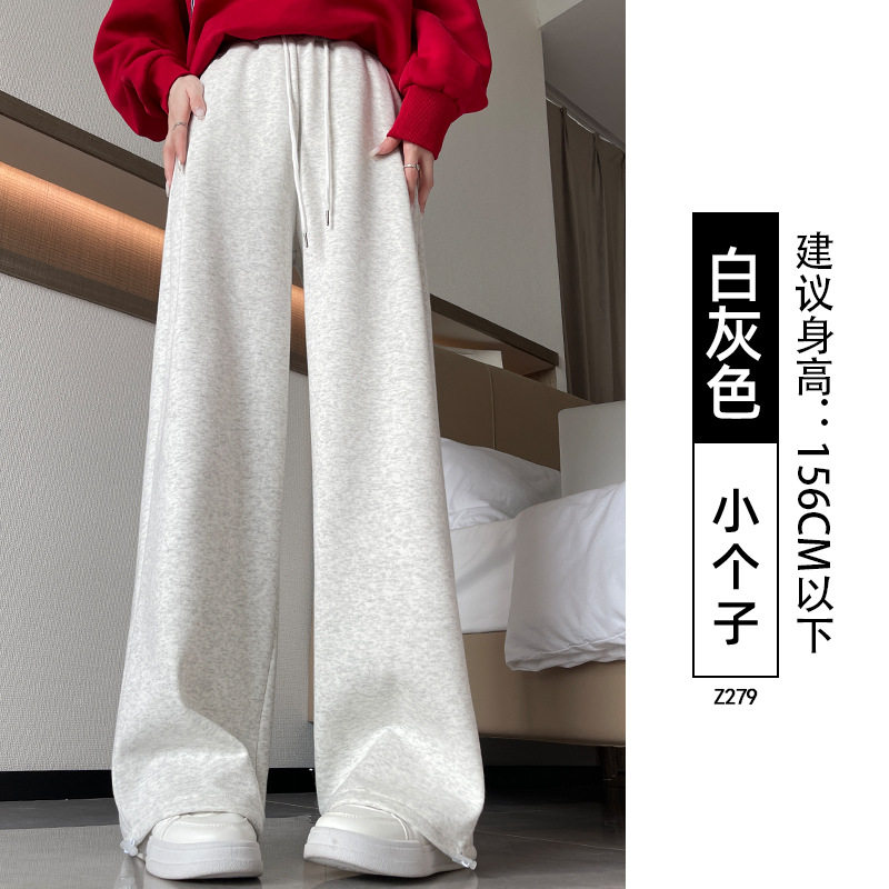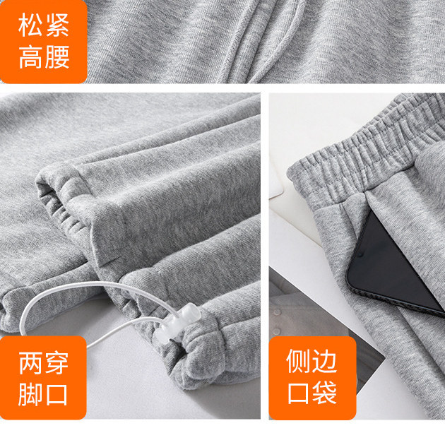 加绒阔腿运动裤子女款2026春季新款宽松显瘦弹力小个子束脚卫裤