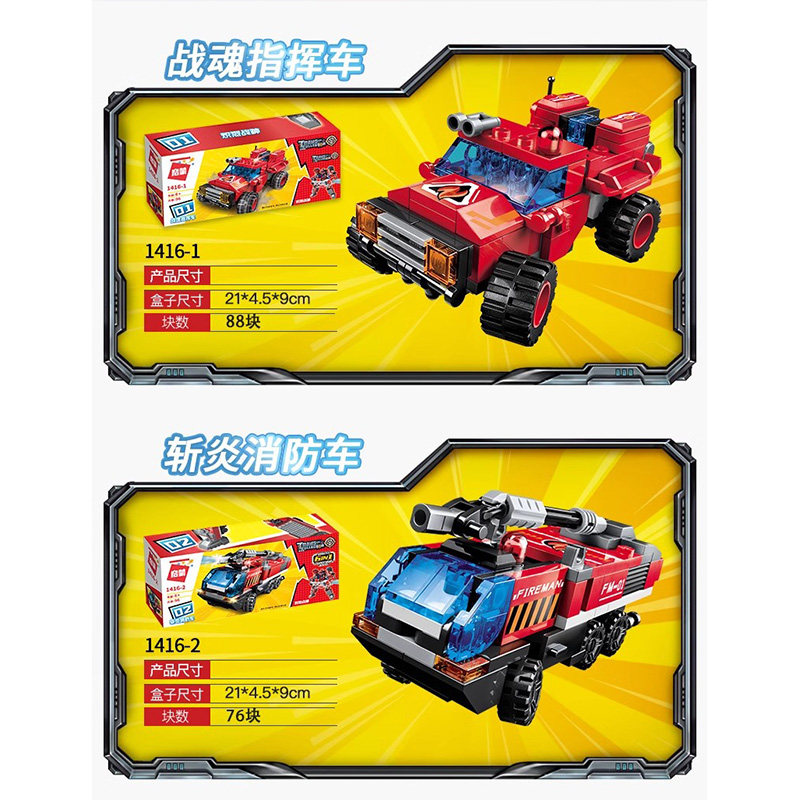 启蒙1416合体变形机器人6合1积木消防车灭火车男孩拼装玩具小颗粒