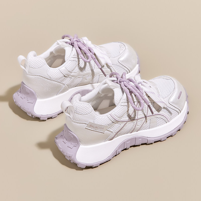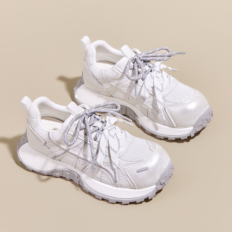 百搭真皮老爹鞋女2026年春夏季新款小蛮腰网面透气运动休闲鞋306