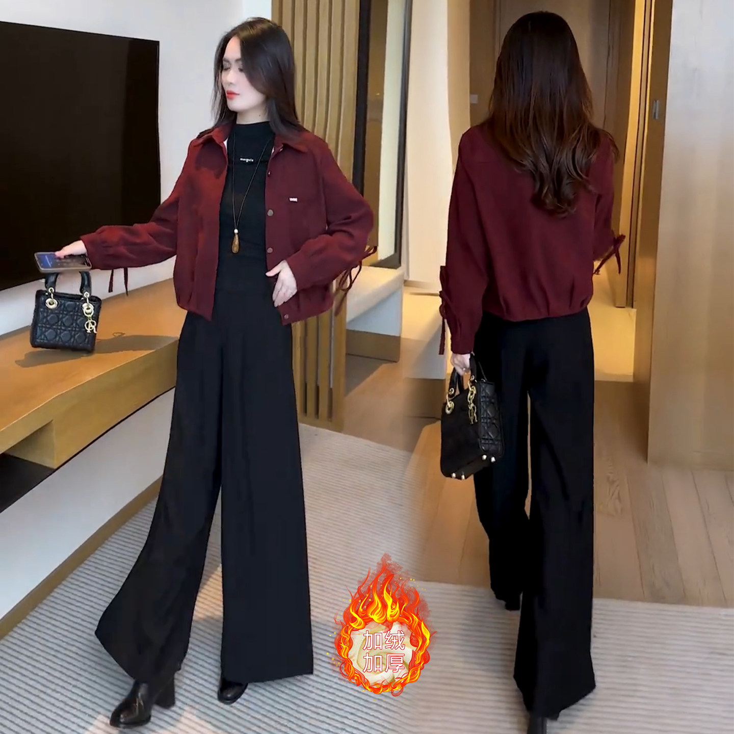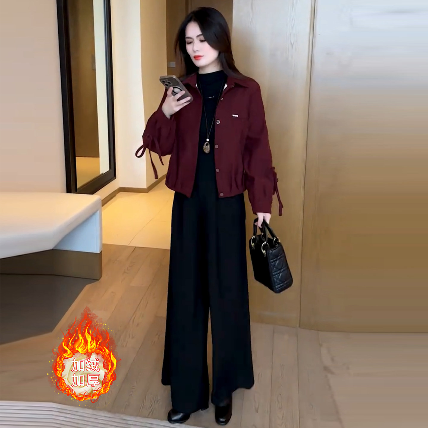 时尚洋气加绒短款外套女2025秋冬新款百搭宽松显瘦保暖夹克上衣潮