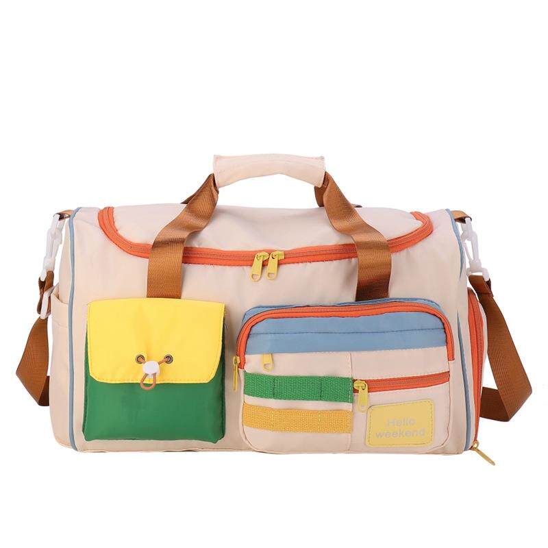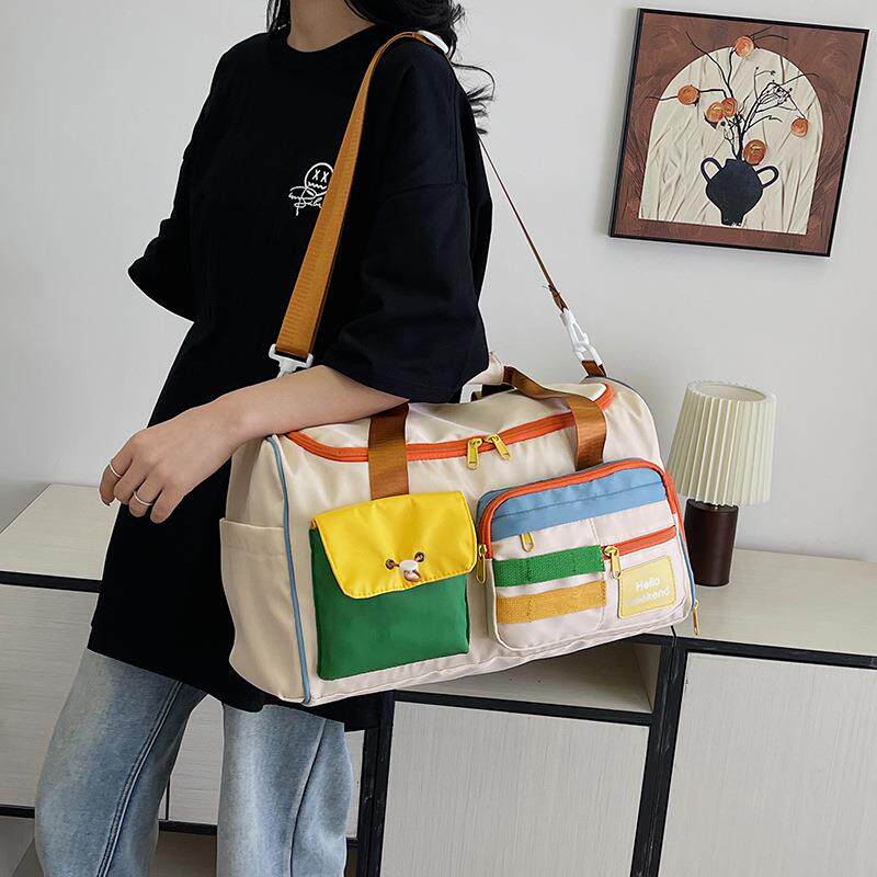 女士外出旅行包时尚大容量撞色斜挎运动健身包大容量旅游手提行李