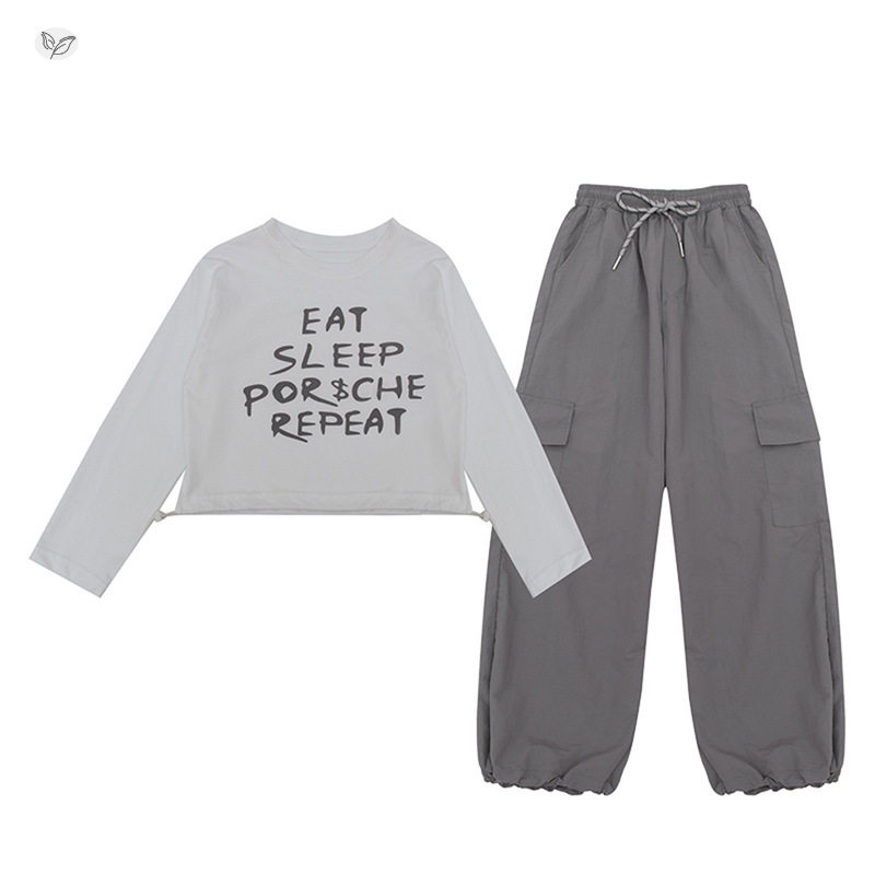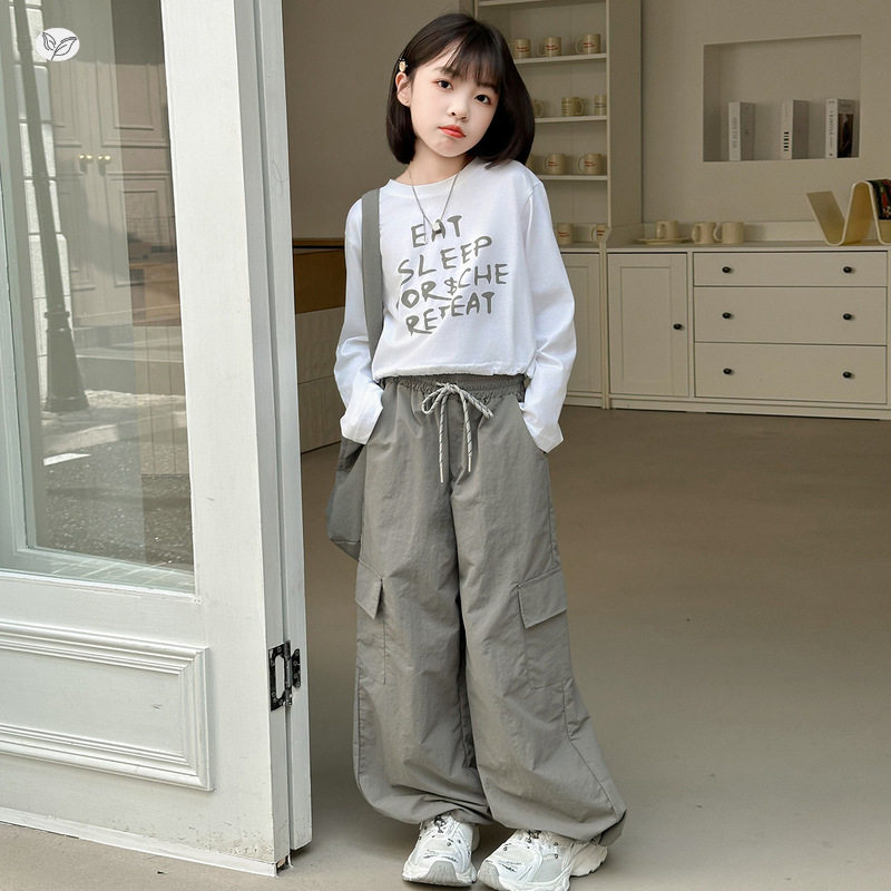 女童春秋套装2026年新款中大童休闲印花长袖T恤工装裤两件套春装