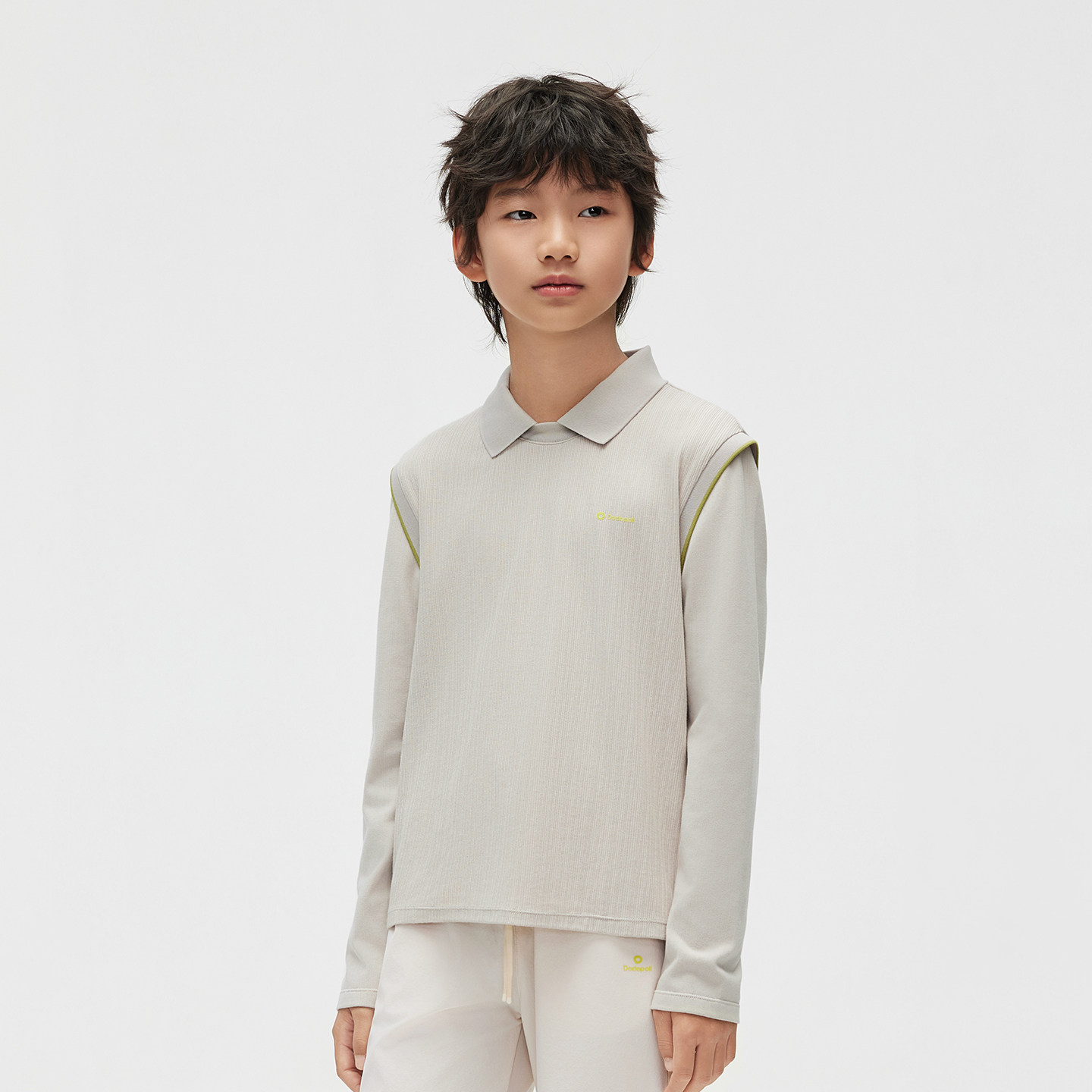 Dodopoli男童POLO衫假两件长袖T恤26春季网球运动休闲上衣打底衫