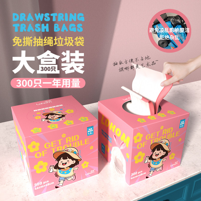 Lohom/啦哄垃圾袋家用特厚加厚免撕抽取式高品质盒装双面3丝300只