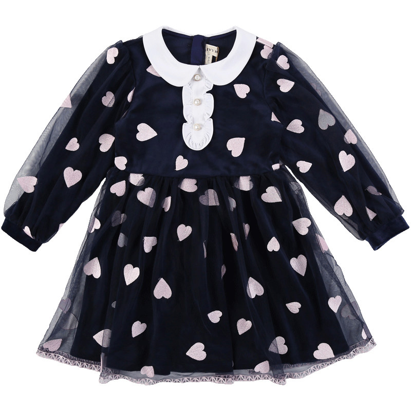 IVY HOUSE常春藤儿童装女童秋季新款 针织网纱长袖连衣裙甜美爱心