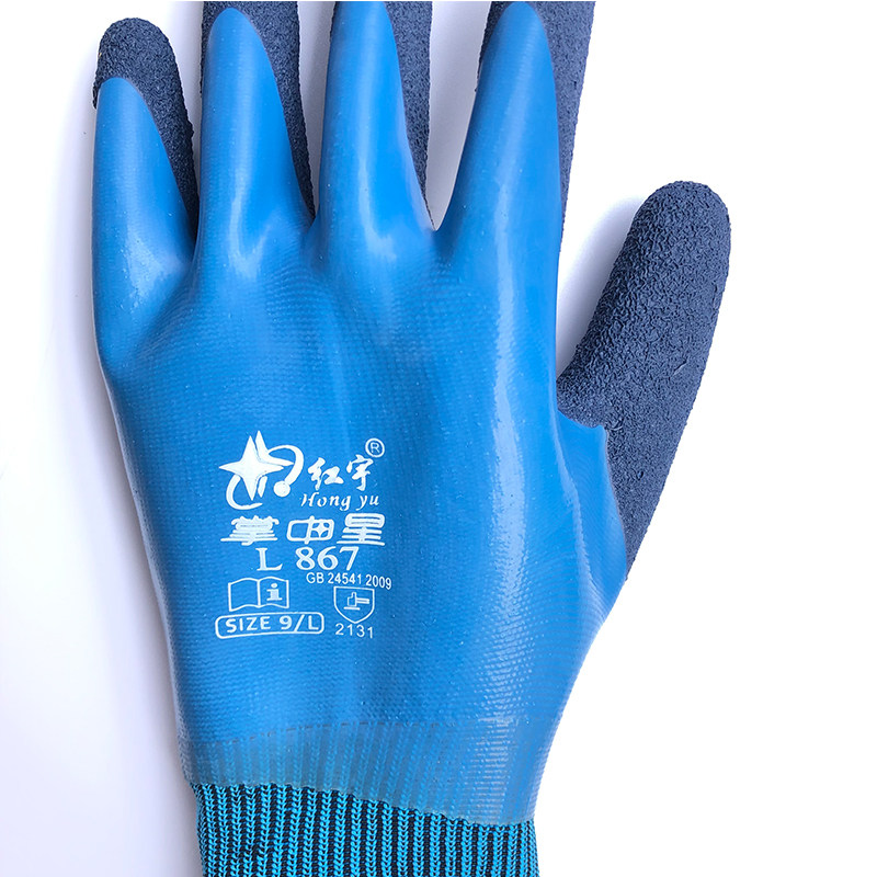 红宇掌中星866劳保手套星宇867大号耐磨防滑橡胶全胶防水杀鱼工业