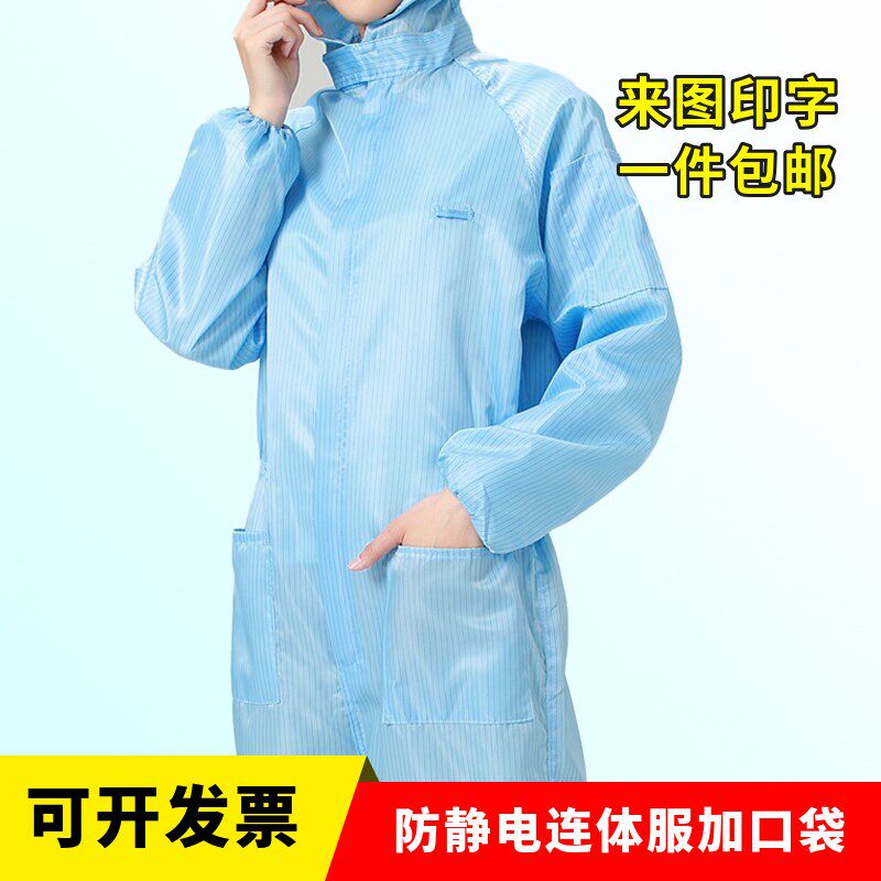 防尘连体服带口袋 车间静电服 喷漆无尘服 防静电连帽连体 工作服