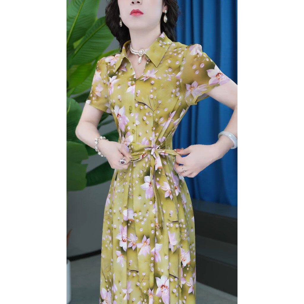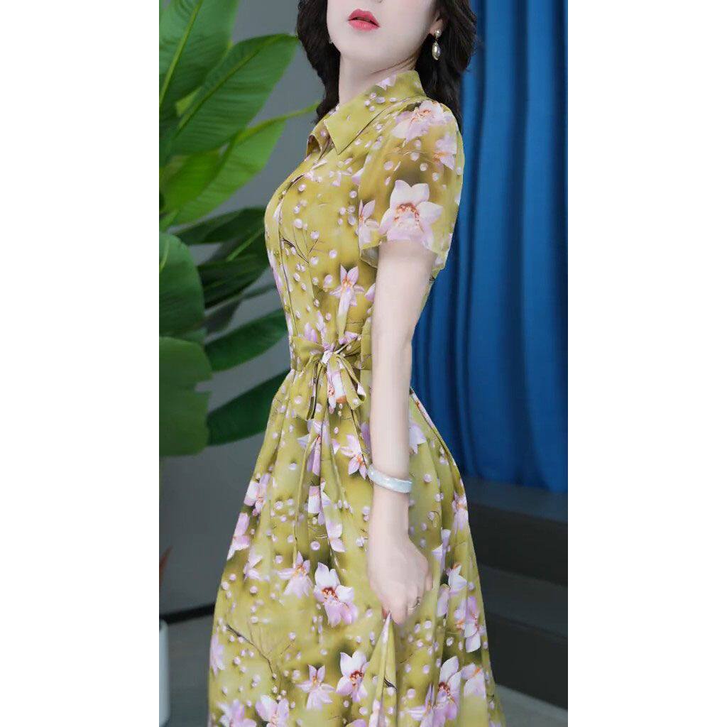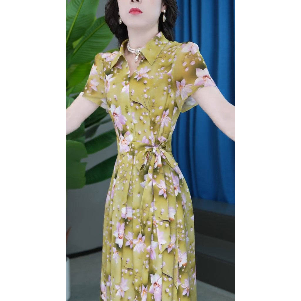 2026年夏季新款时尚短袖连衣裙女气质收腰显瘦中长款印花休闲裙子