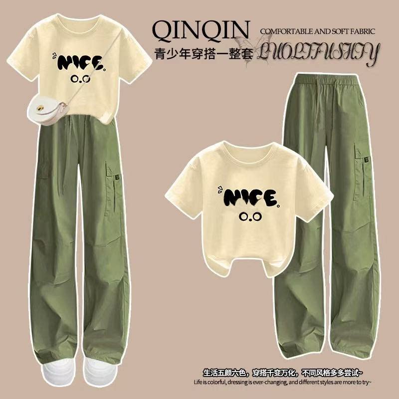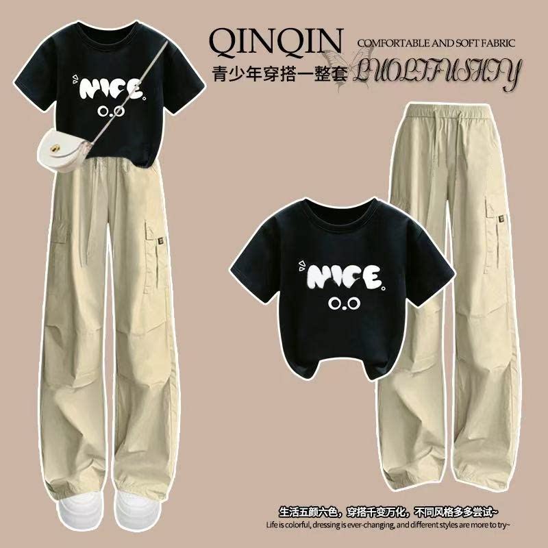 套装女童夏2026新款爆款高级感纯棉短袖中大童巨好看白色t恤上衣