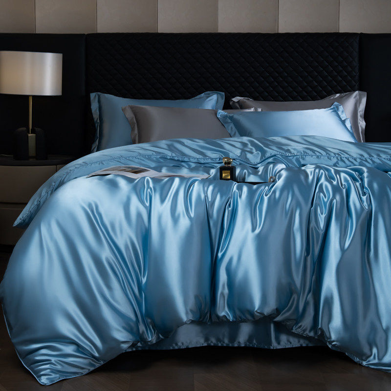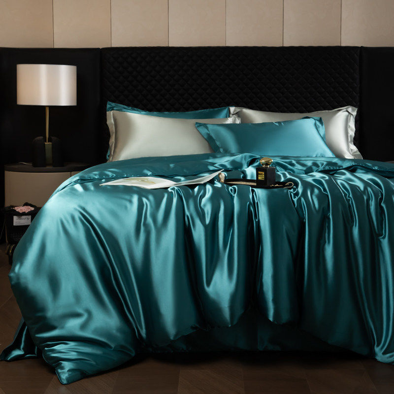 紫色冰丝四件套纯色丝绸春夏1.8m2床品4件套被套床单三件床上用品