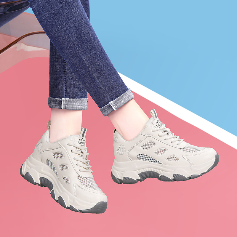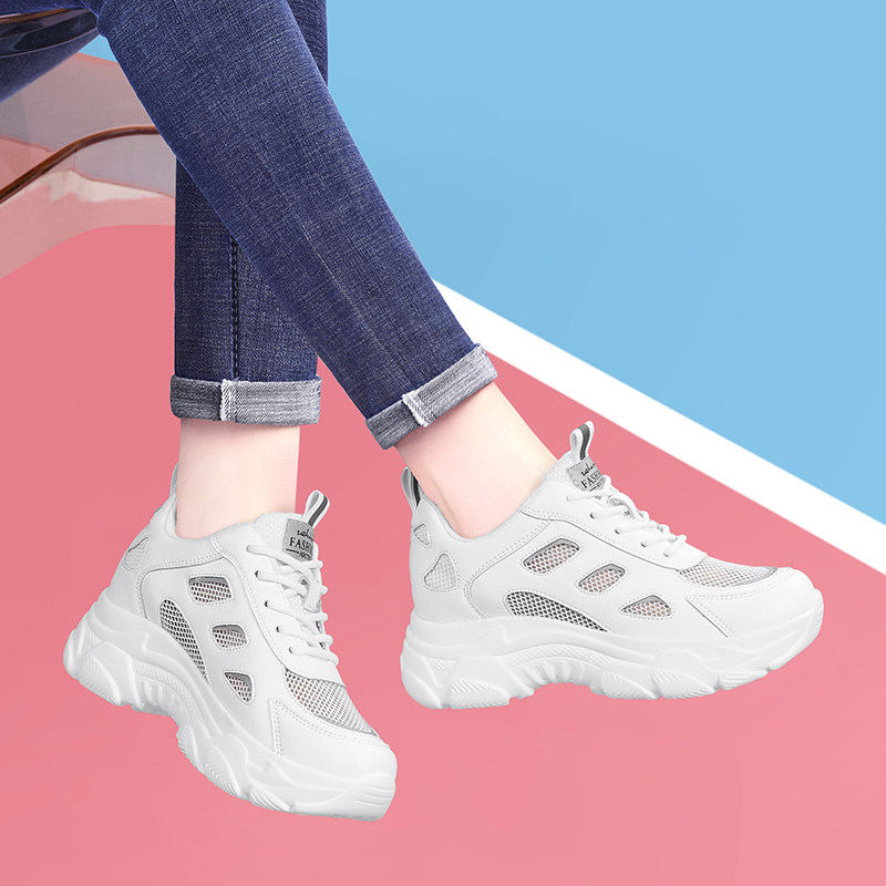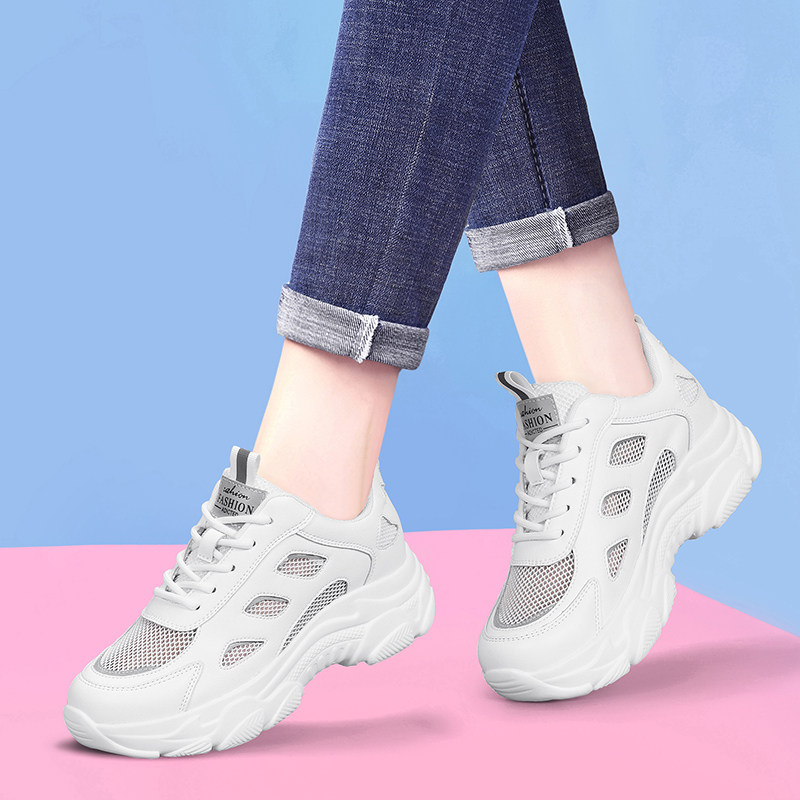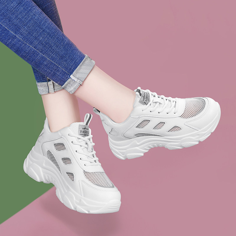 夏季女鞋老爹鞋女透气网面网鞋配阔腿裤的鞋子厚底小白鞋运动鞋潮