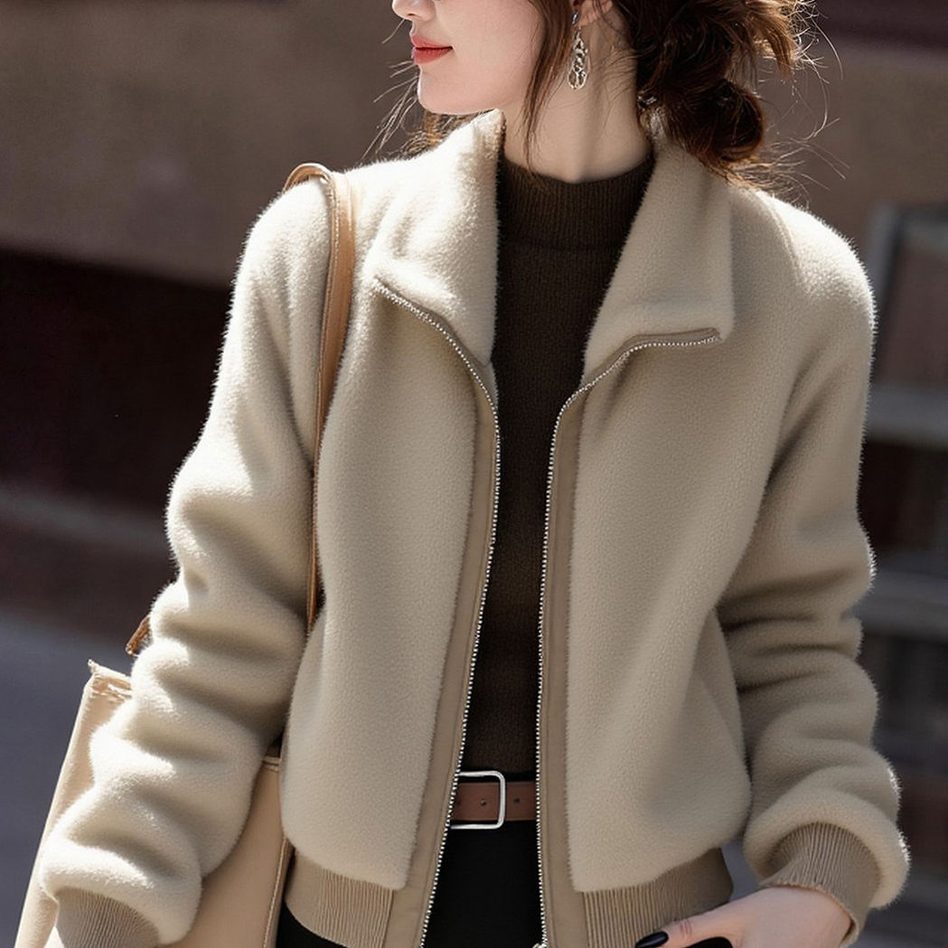 2026早春新款小个子巨好看短款浅咖色棒球服加绒加厚羊羔毛外套女