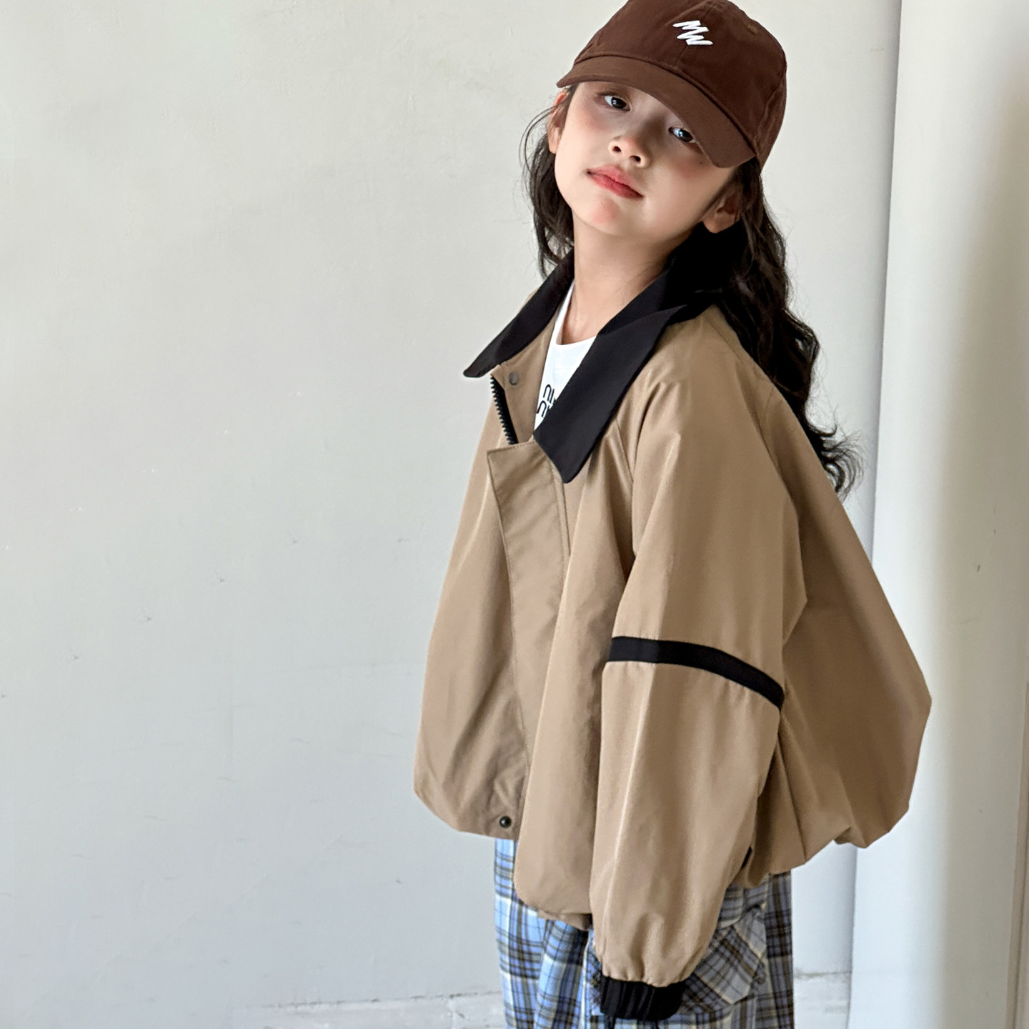 女童外套2026春装新款洋气儿童初中生春秋款大童短款翻领风衣上衣