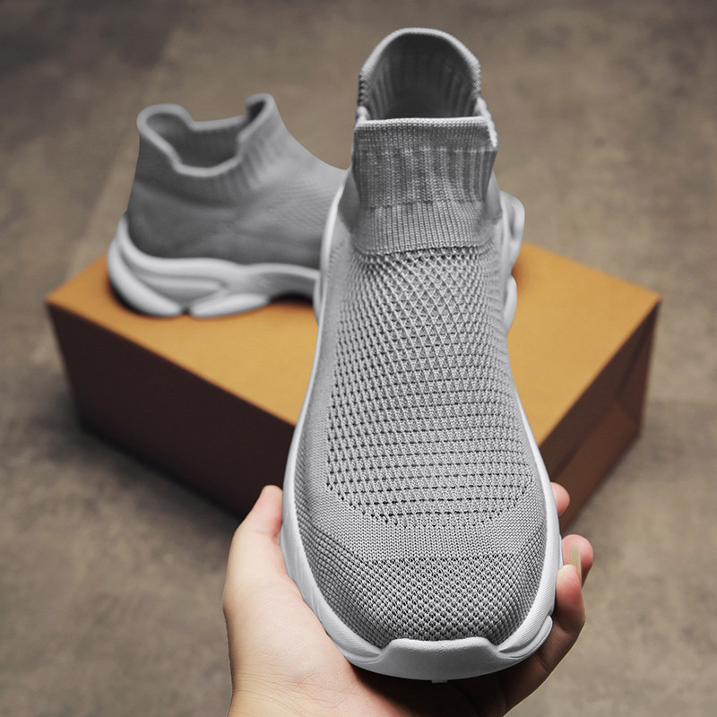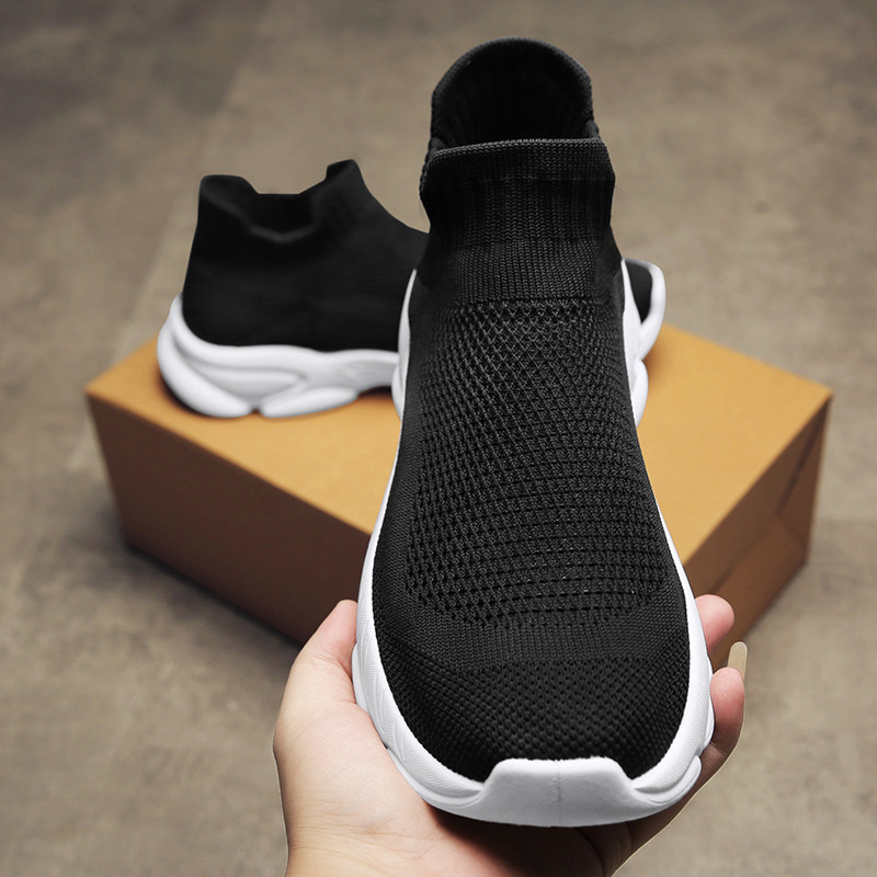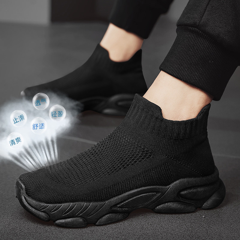 一脚蹬男鞋春季透气飞织黑色运动跑步休闲男士上班工作劳保袜子鞋