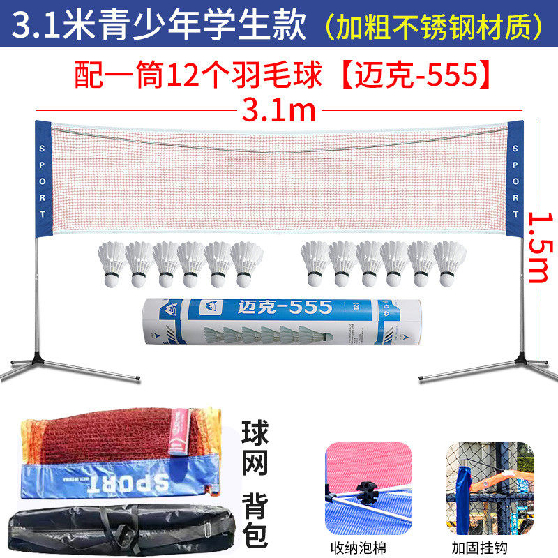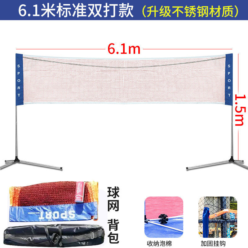 羽毛球网架便携式标准拦网家用户外柱移动网简易支架子场地室外漩