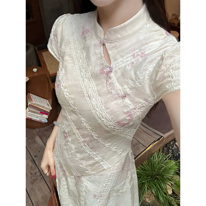 【粉黛】新中式碎花改良旗袍连衣裙女春夏绝美长裙高级感日常可穿