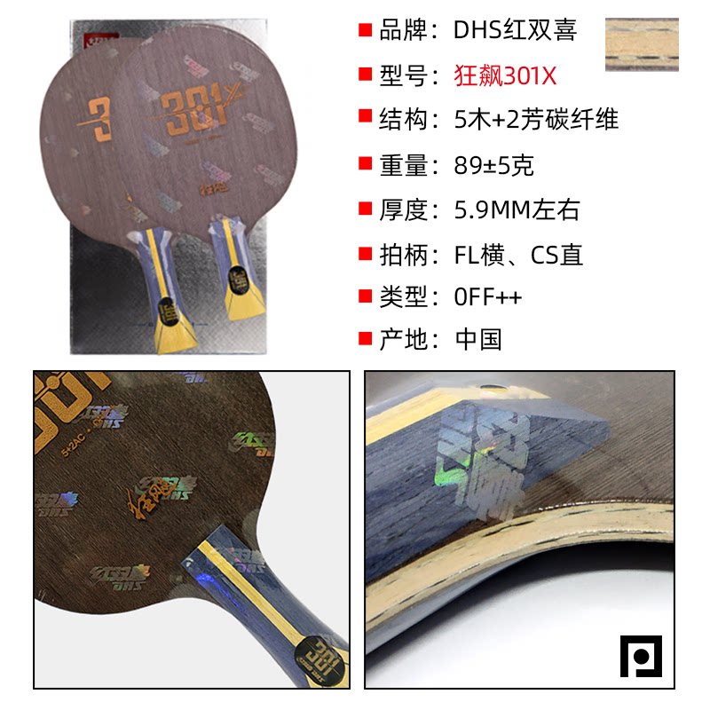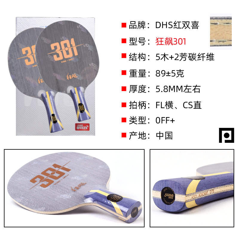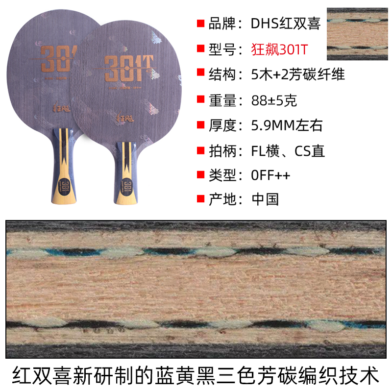 【乒乓网】红双喜狂飙H301XZT底板国家队7层芳碳素纤维乒乓球拍