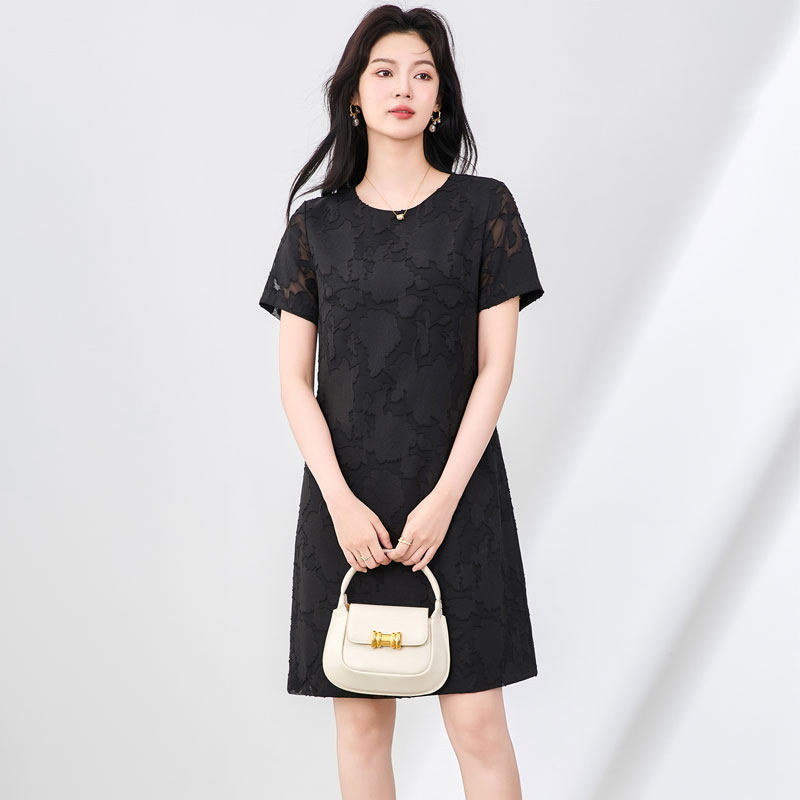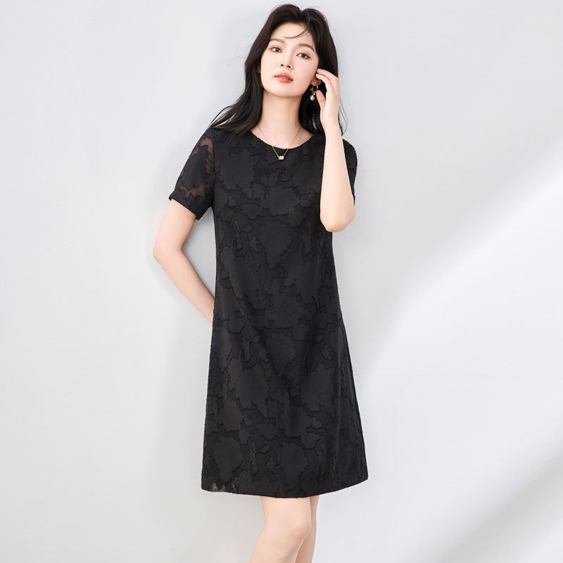 迪奥连衣裙女夏26新款高级感烧花设计短袖A字裙气质显瘦中长裙子