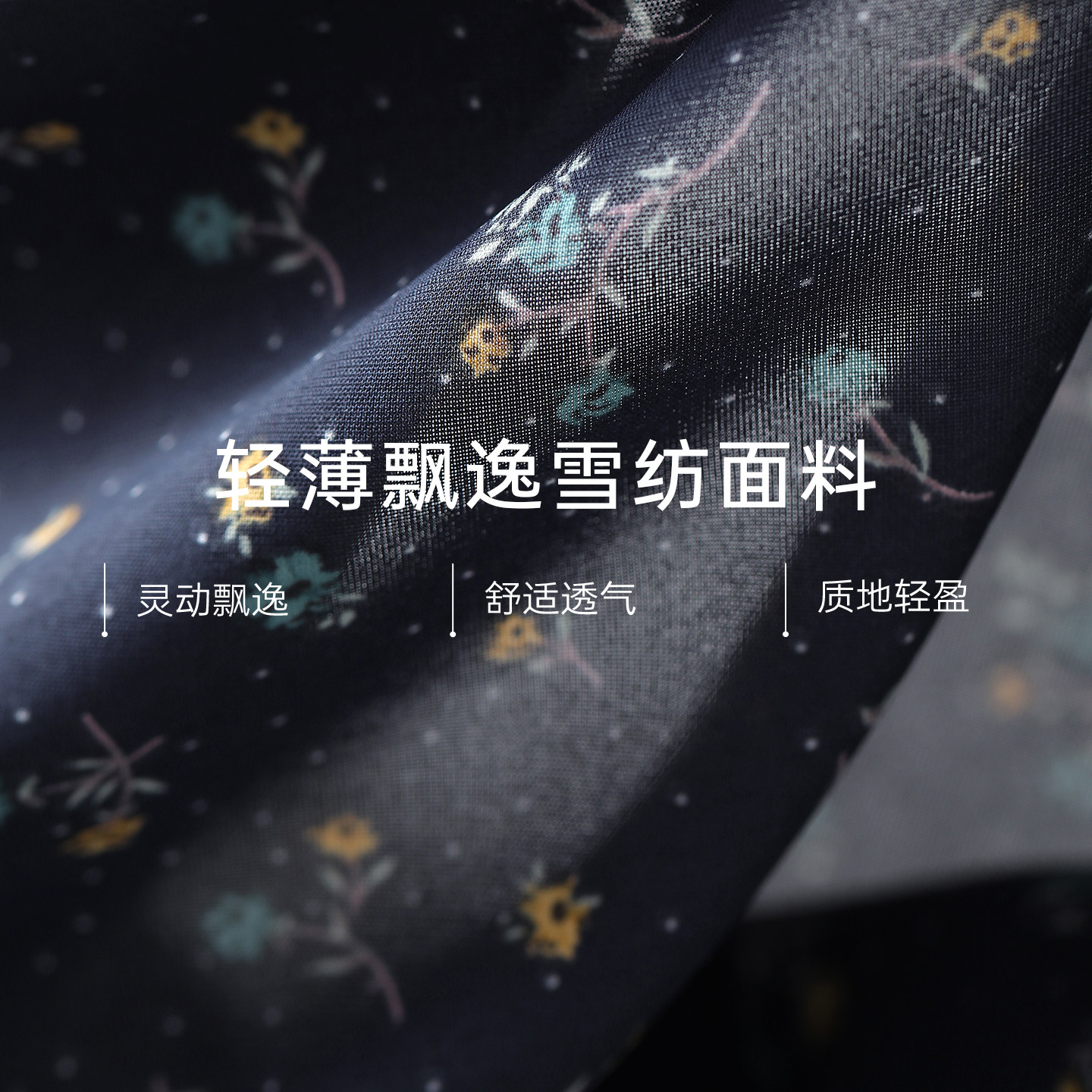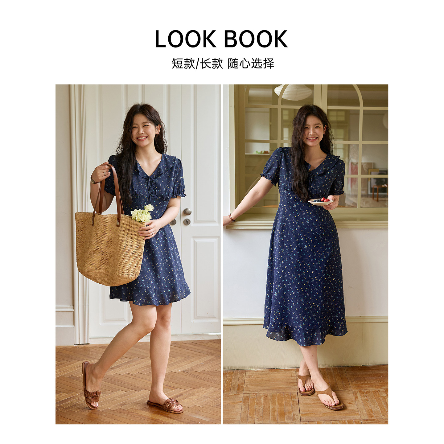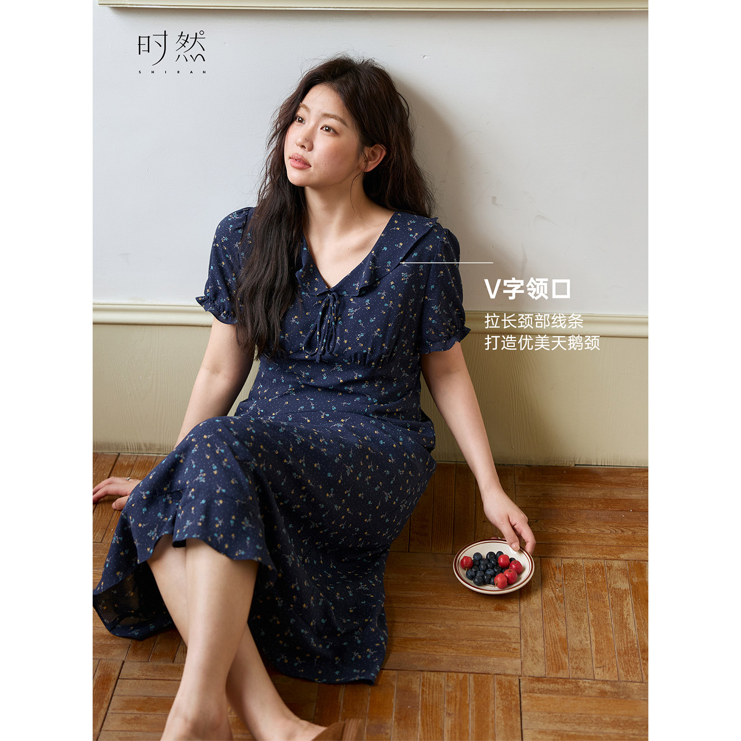 时然微胖大码女装雪纺连衣裙26夏新款收腰显瘦遮肉V领碎花茶歇裙