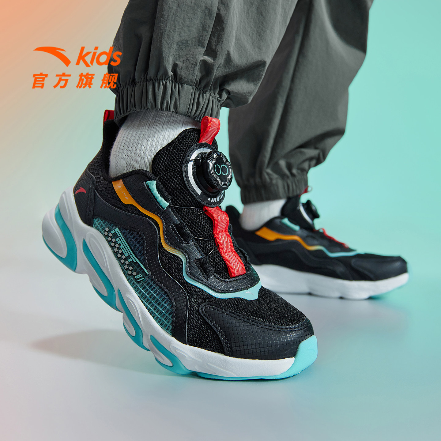 安踏儿童运动鞋骇浪跑鞋2026春夏季新网面男大童专业纽扣鞋男童鞋