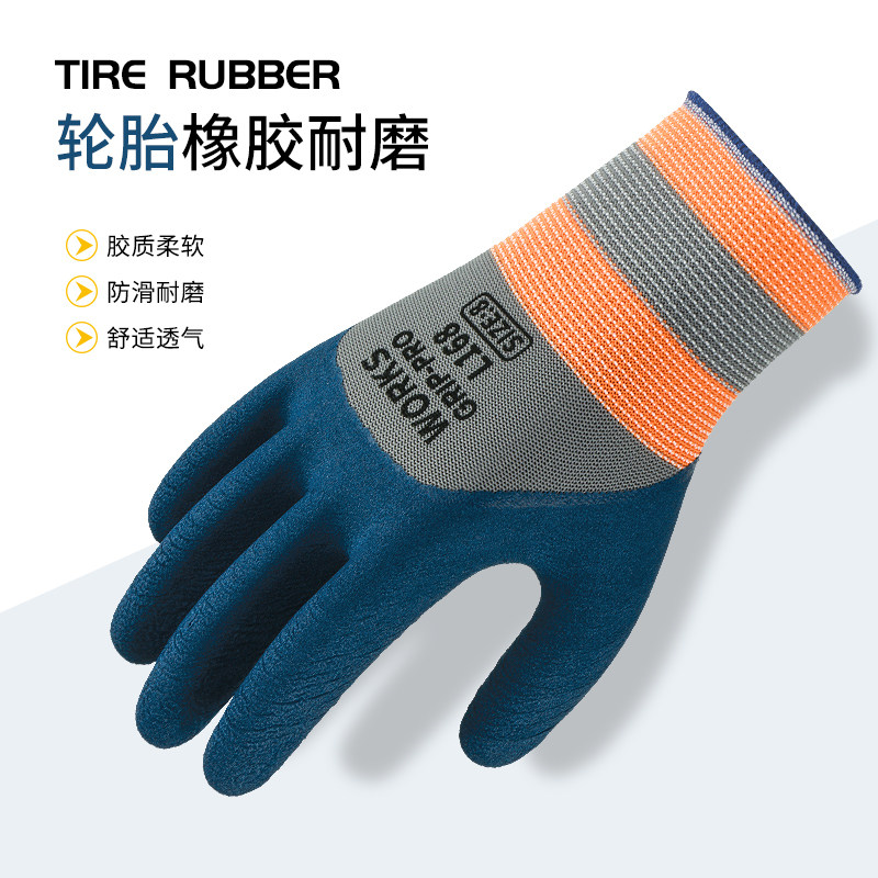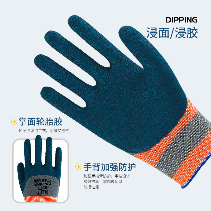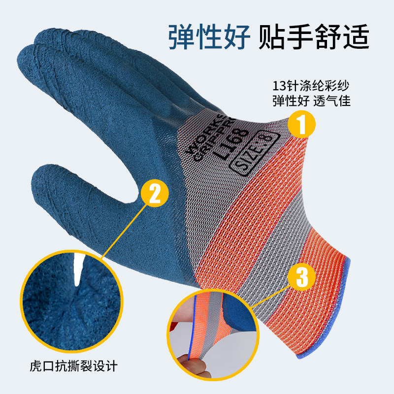 手套工作劳保耐磨防滑加厚劳动乳胶橡胶劳工防护干活工地浸胶防水