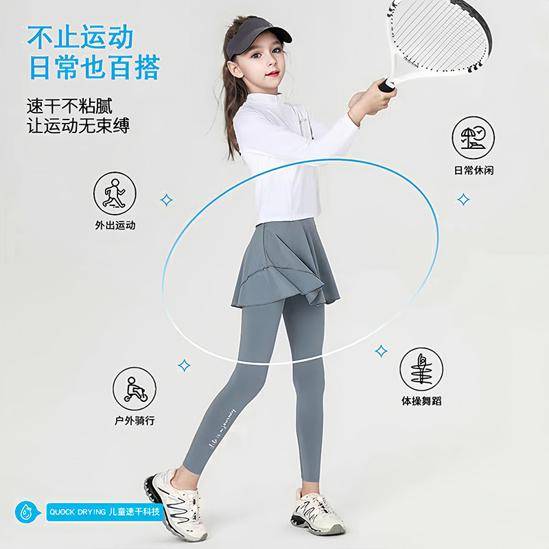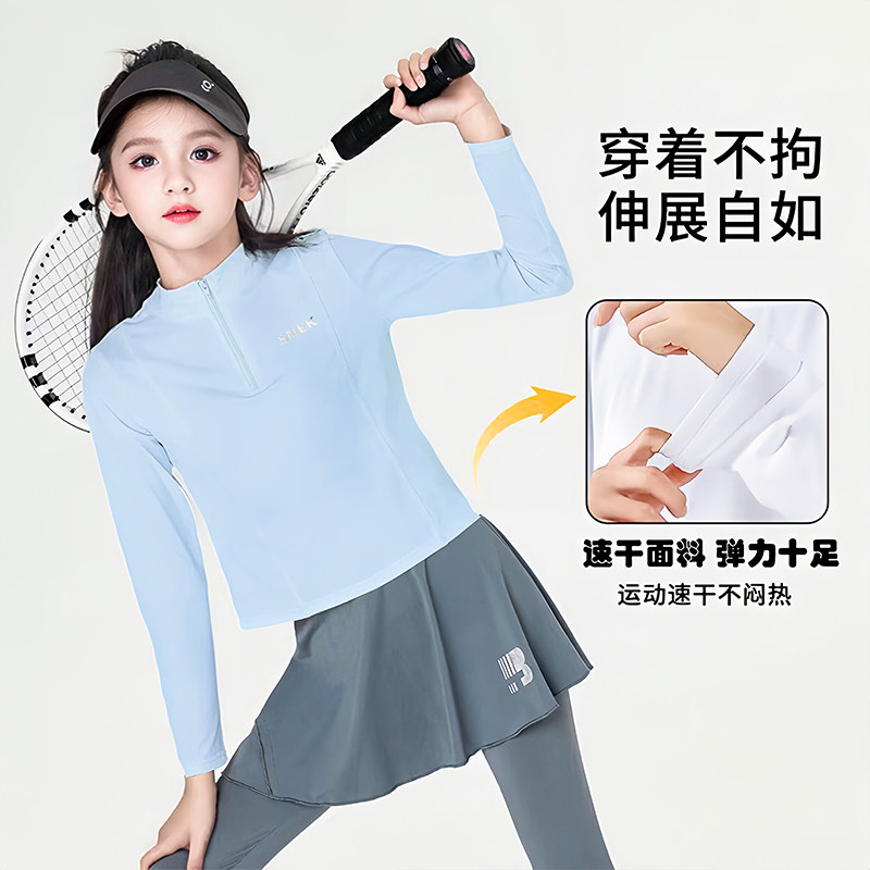 女童t恤长袖速干衣春夏新款中大童户外训练上衣网球运动儿童套装
