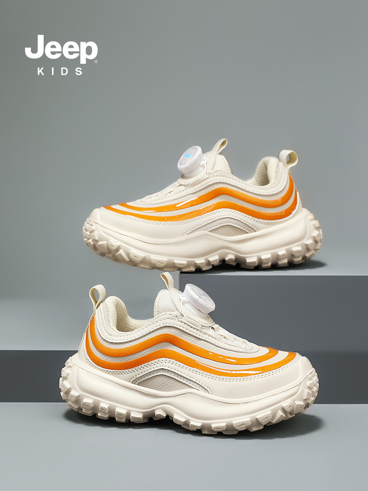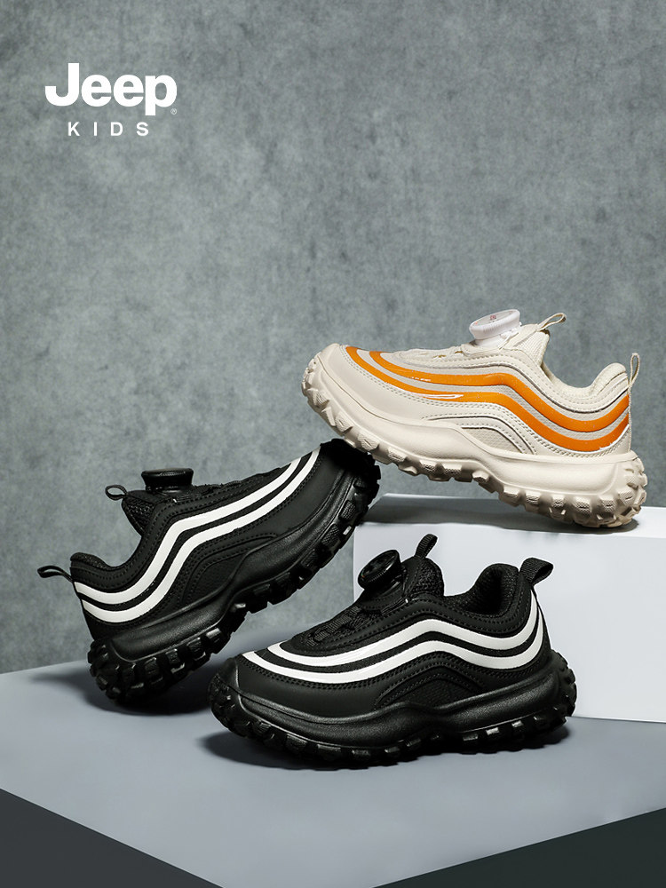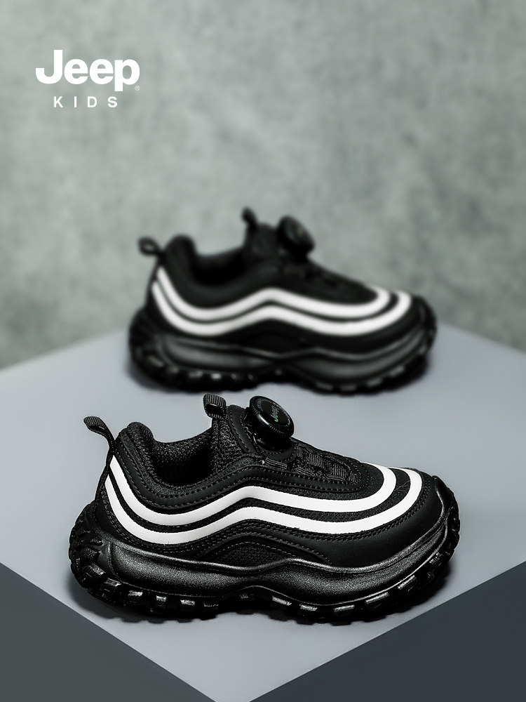 jeep童鞋黑色儿童运动鞋秋冬2025新款夏款透气网面鞋男童鞋学生