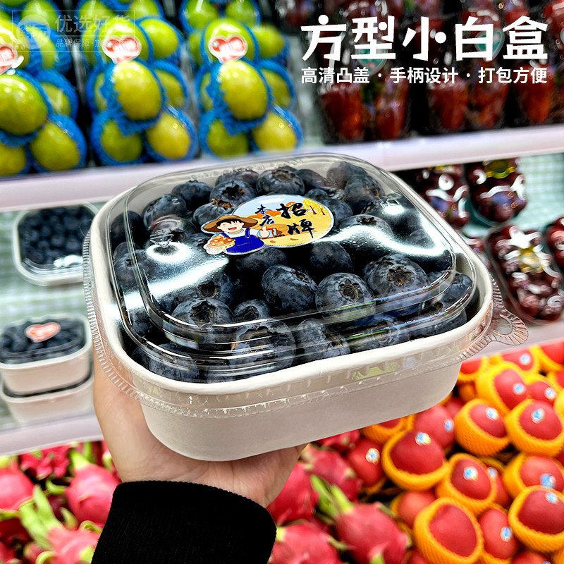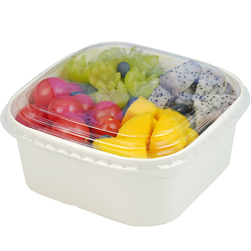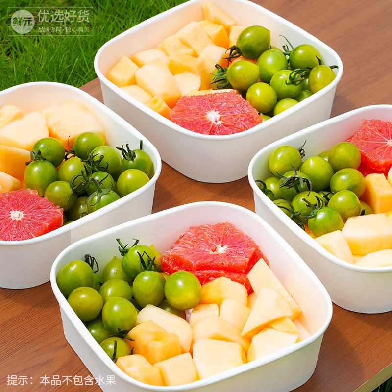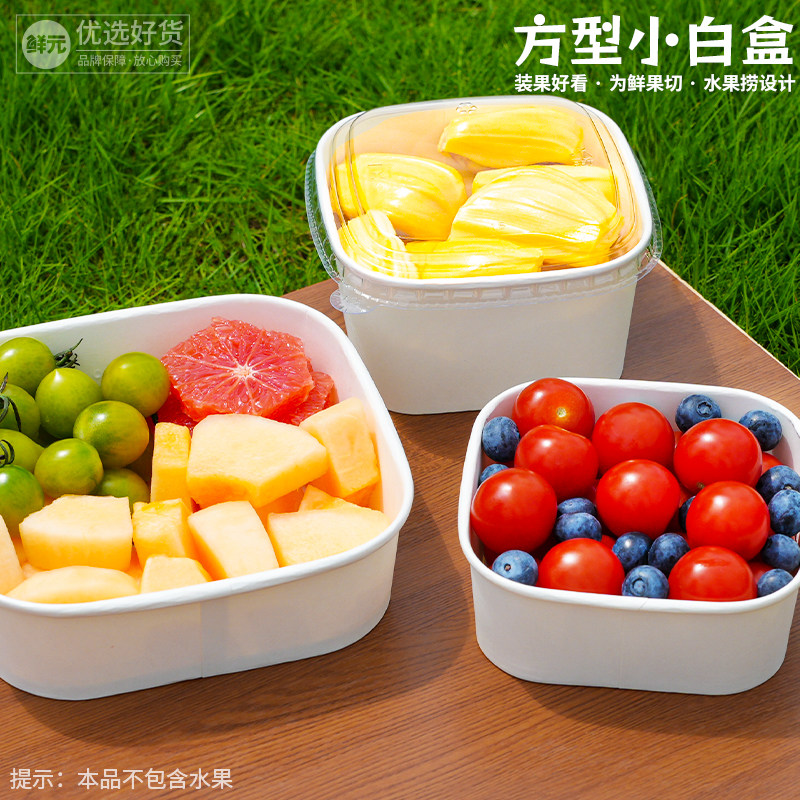 网红爆款小白盒一次性白色牛皮纸正方形果切盒水果打包盒外卖沙拉