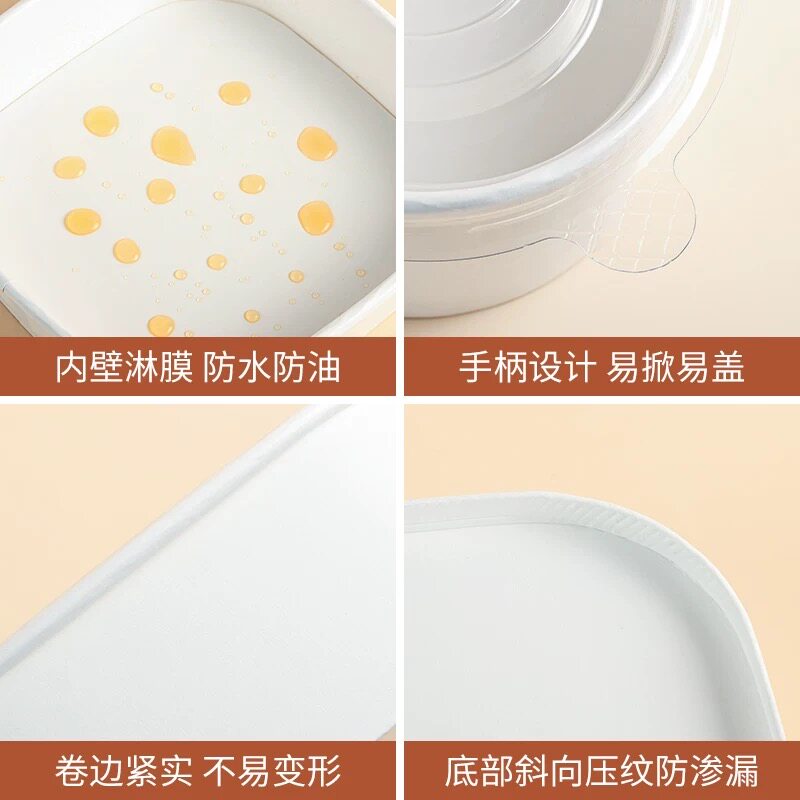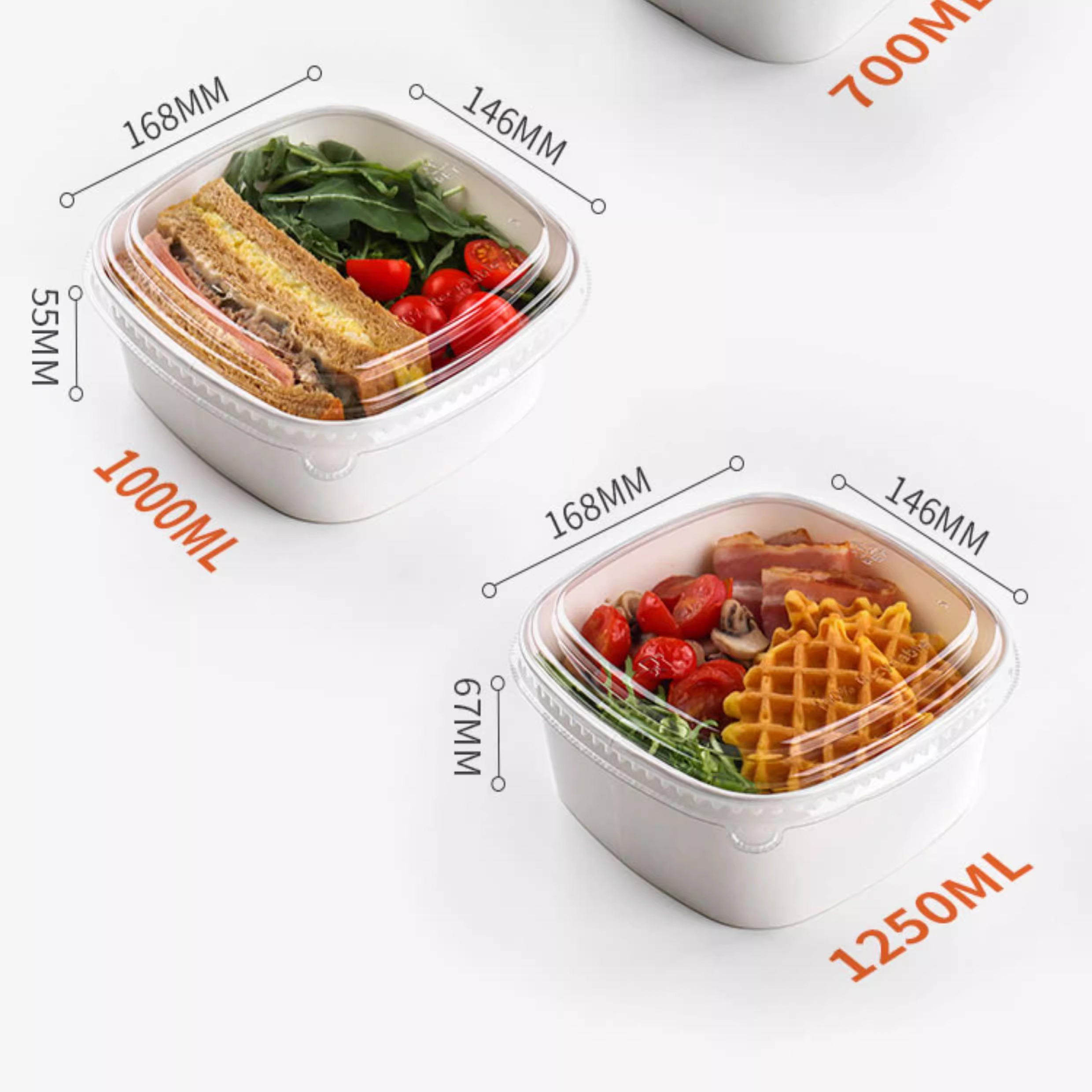 一次性餐盒白色牛皮纸碗正方形加厚带盖外卖果切盒水果打包盒