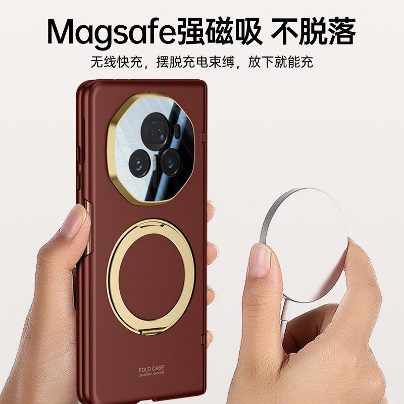 适用荣耀magicv3手机壳新款折叠屏超薄铰链中轴保护套超薄肤感磁吸全包防摔外壳带支架壳膜一体玻璃防窥潮牌
