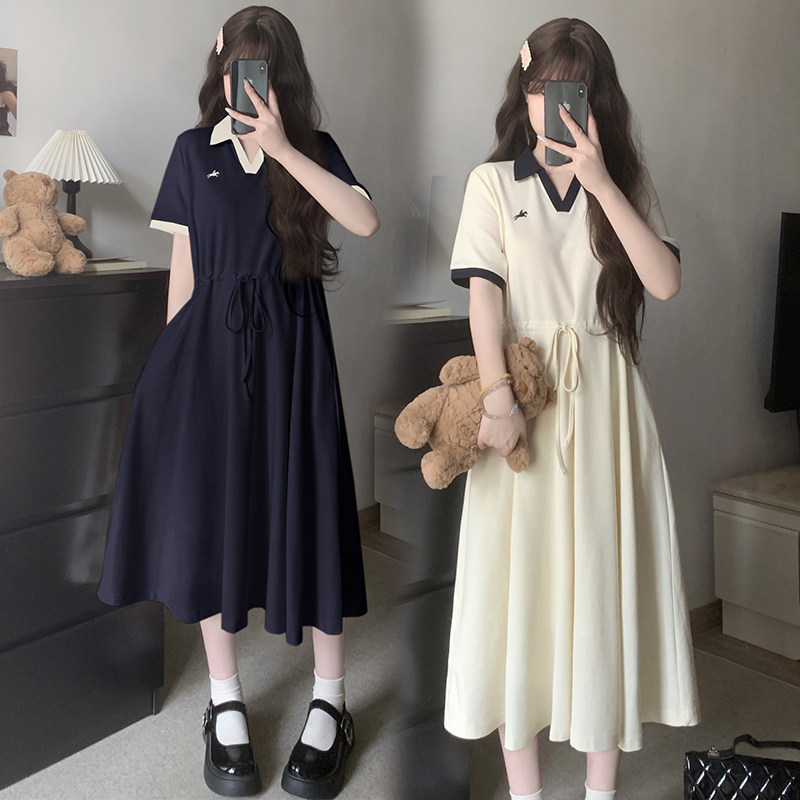 夏装女大童学院风连衣裙初中生女孩甜美森系小清新收腰中长款裙子