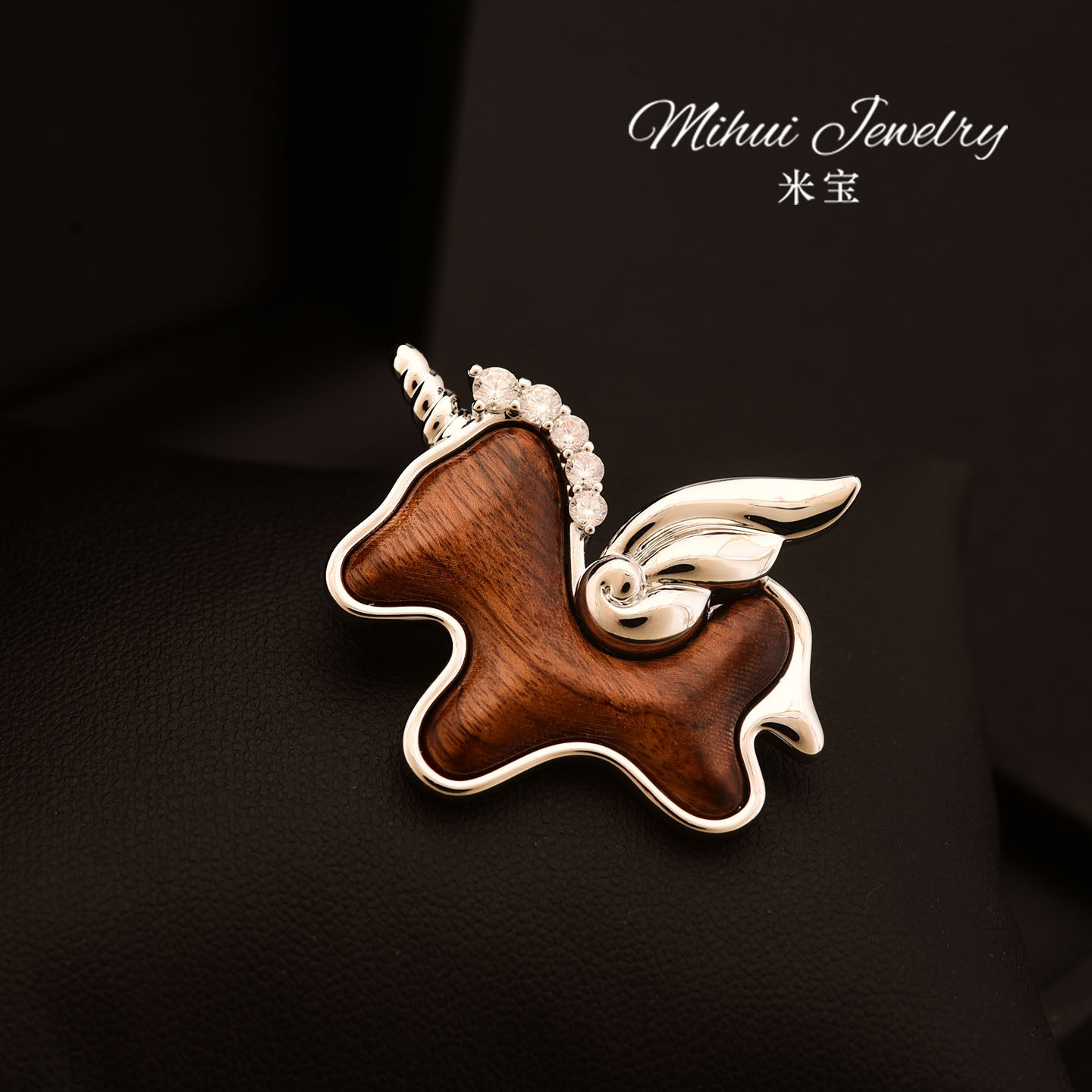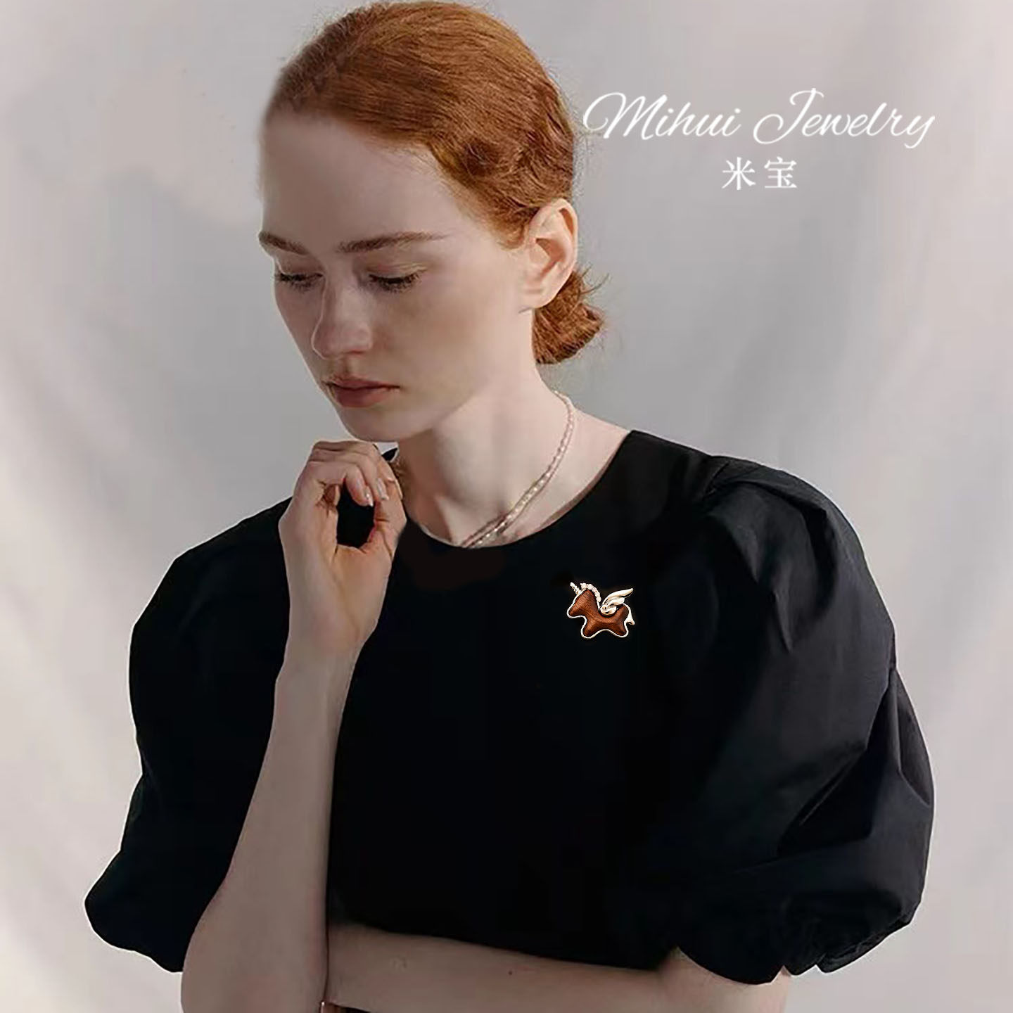 设计师款飞马别针天然胡挑木动物胸针西装衬衫领口可爱质感配饰女