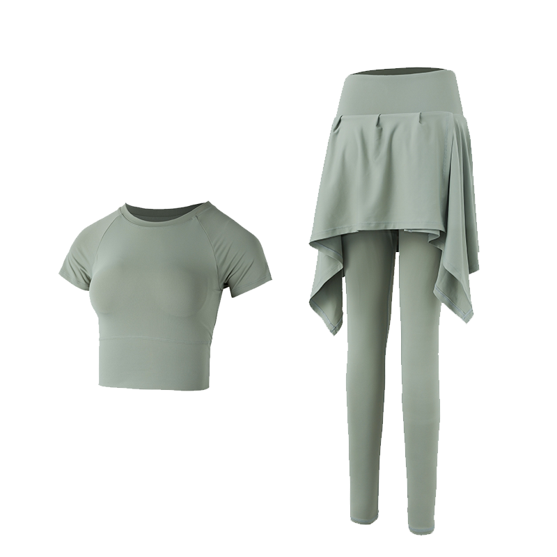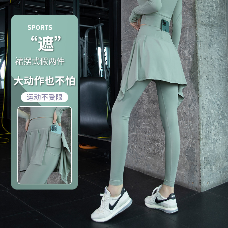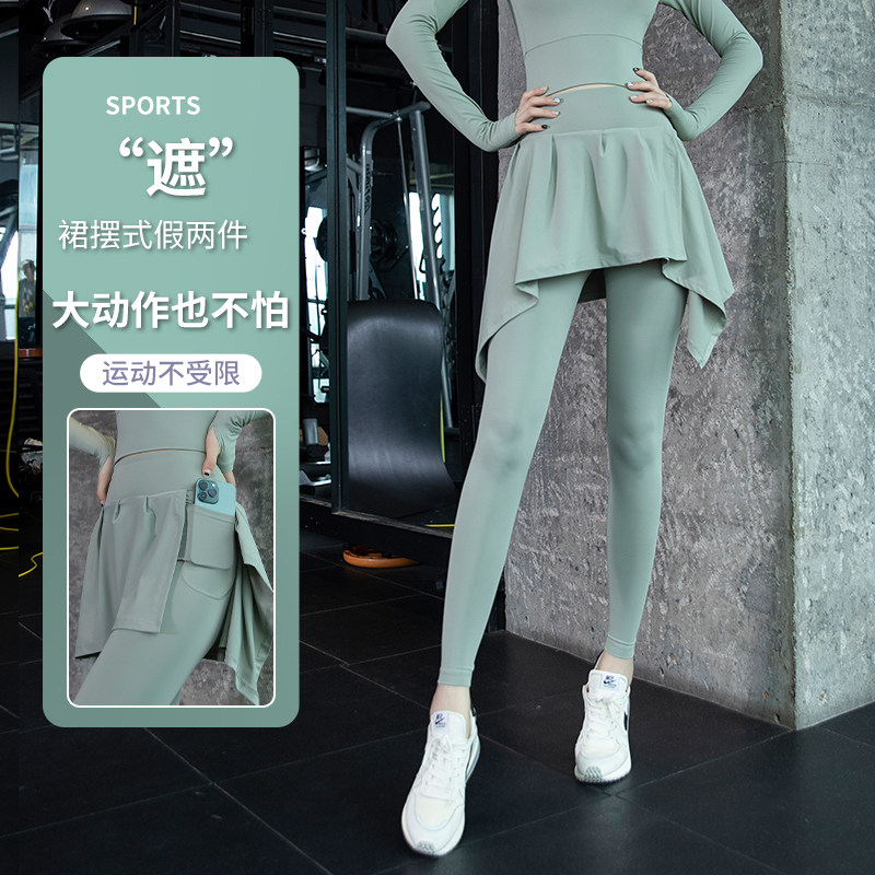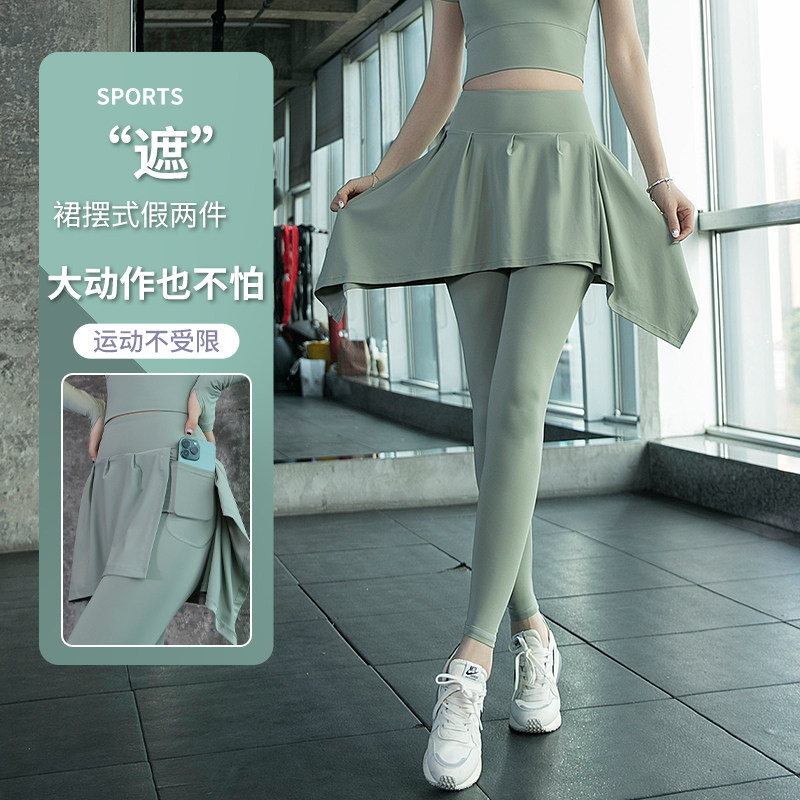 假两件裙裤瑜伽裤女夏天高腰提臀跑步训练运动紧身大码健身服套装