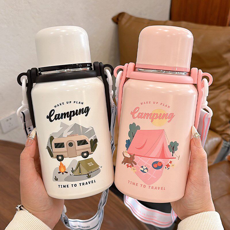 保温杯大容量男款316不锈钢杯子女双饮吸管杯可斜挎便携水壶带盖