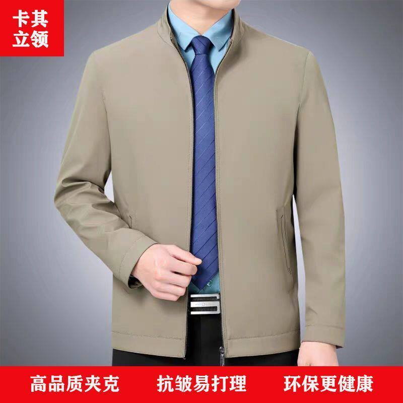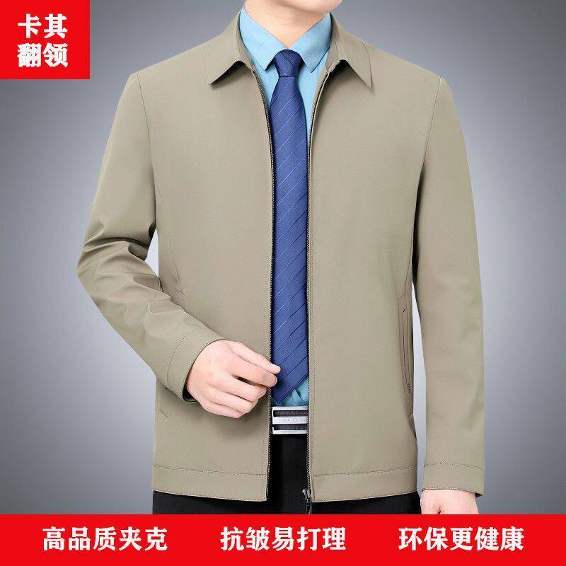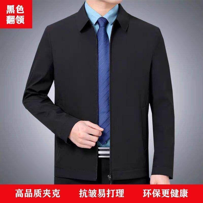 中老年人男士翻领行政夹克2026春秋新款商务休闲宽松爸爸春装外套