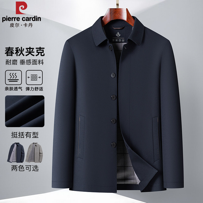 皮尔卡丹行政夹克外套男公务员商务休闲翻领2026新款高端爸爸春装