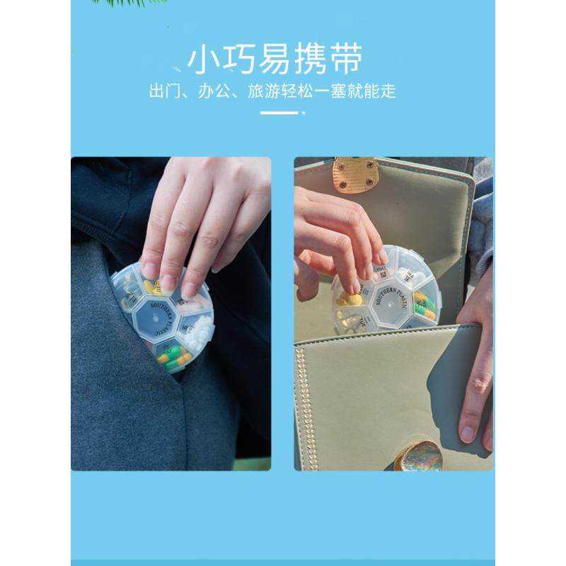 小药盒便携式圆形一周7天随身迷你药盒子多功能装药收纳盒大容量