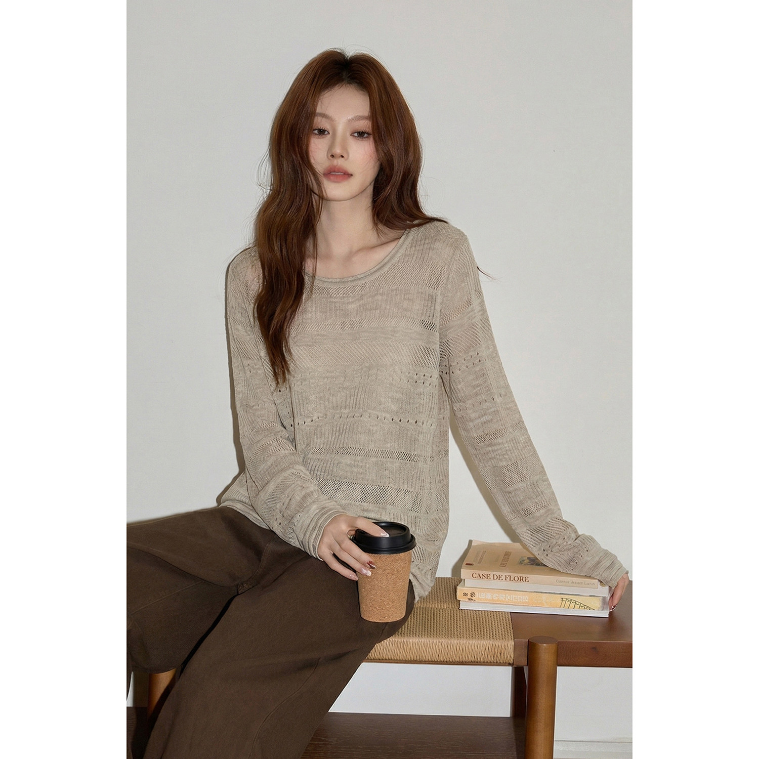 慵懒重工镂空提花防晒罩衫春装女款2026年新款宽松长袖针织衫上衣