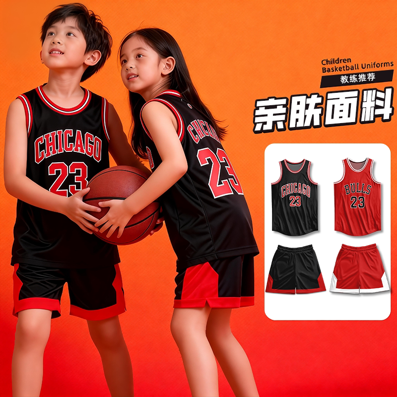 儿童篮球服套装男女童秋冬四件套公牛球衣乔23号丹定制队服训练服