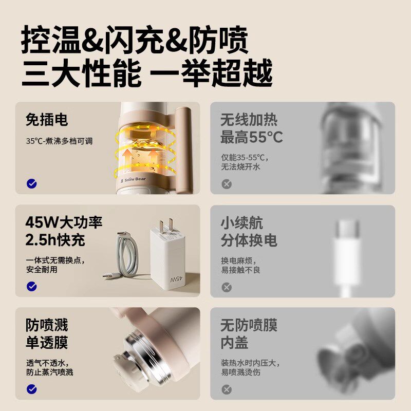 小白熊恒温水壶婴儿专用外出便携式恒温杯无线冲调奶神器保温水杯