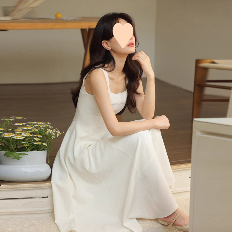 法式初恋白色吊带连衣裙女春收腰显瘦气质小个子高腰御姐气质长裙